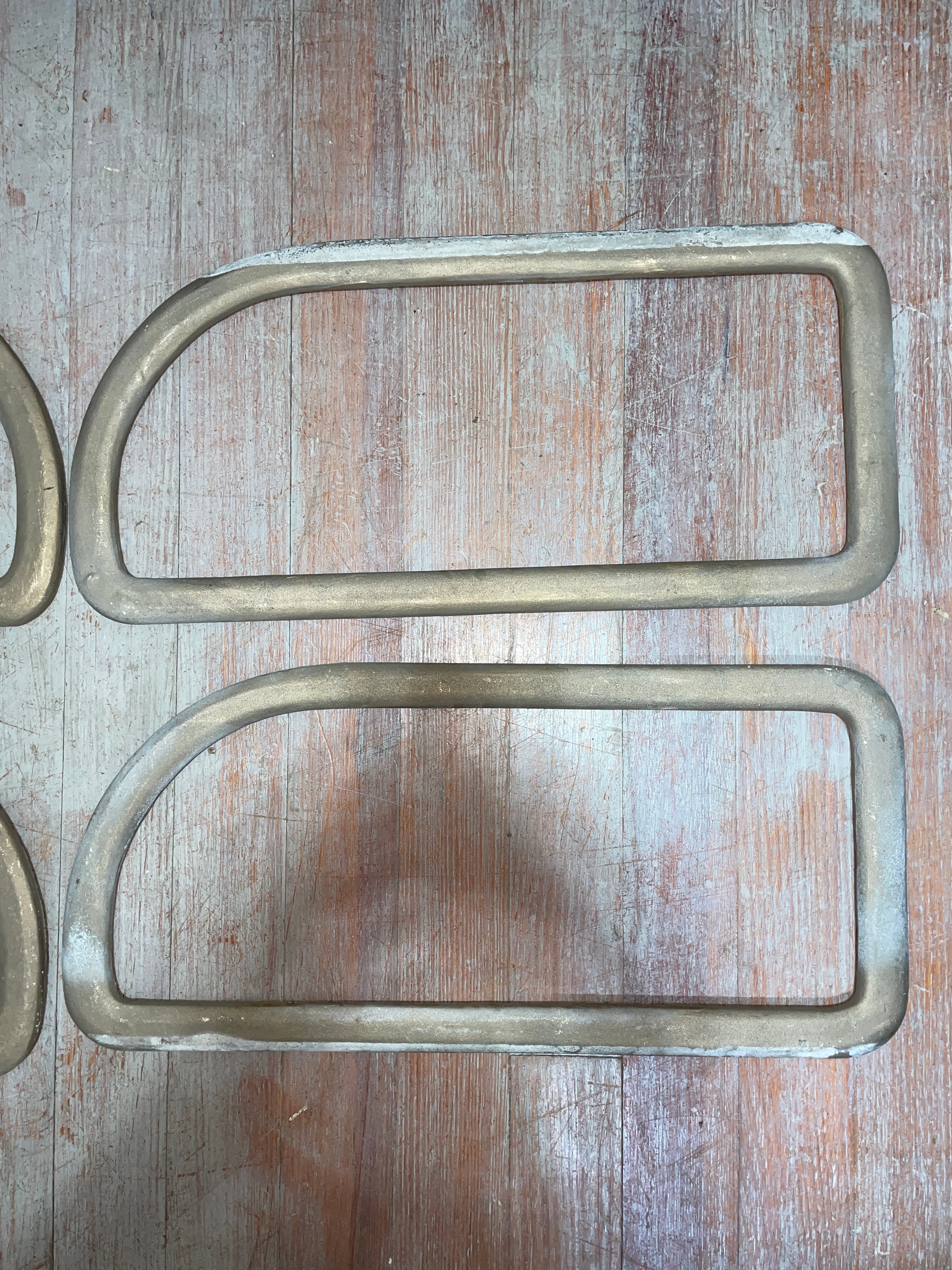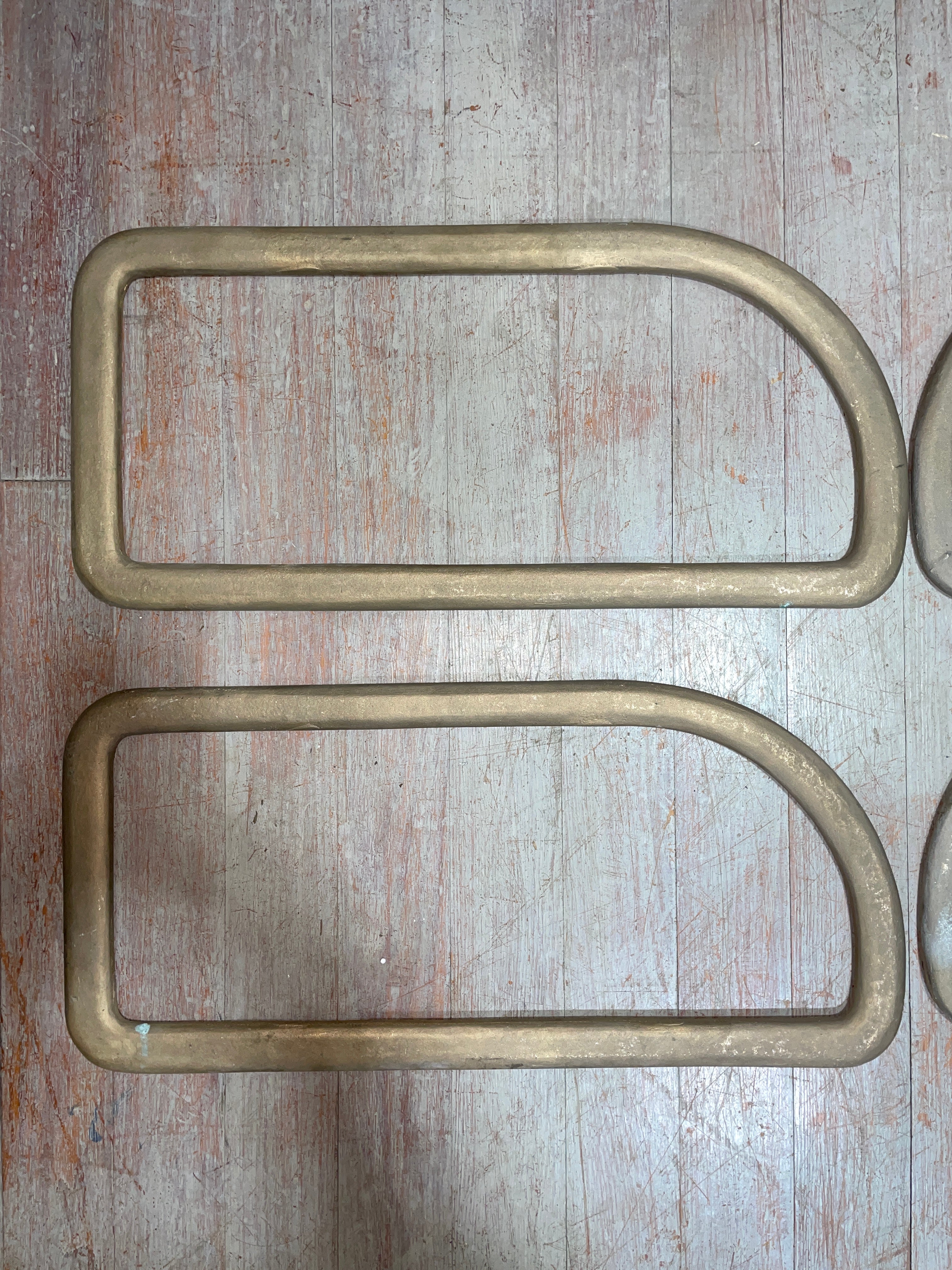 This is a set of 4 60's era port glass retainers. Fits for 60's era Pearson Wanderer, Van Guard, Ariel, Renegade, Coaster and Triton. Possible others but these are the known for a fact boats these retainers fit. Included you will get 4 - as shown. Front and back. These are a sand finish bronze. They do not have holes. These need to be drilled on site upon installing to ensure proper secure fit.