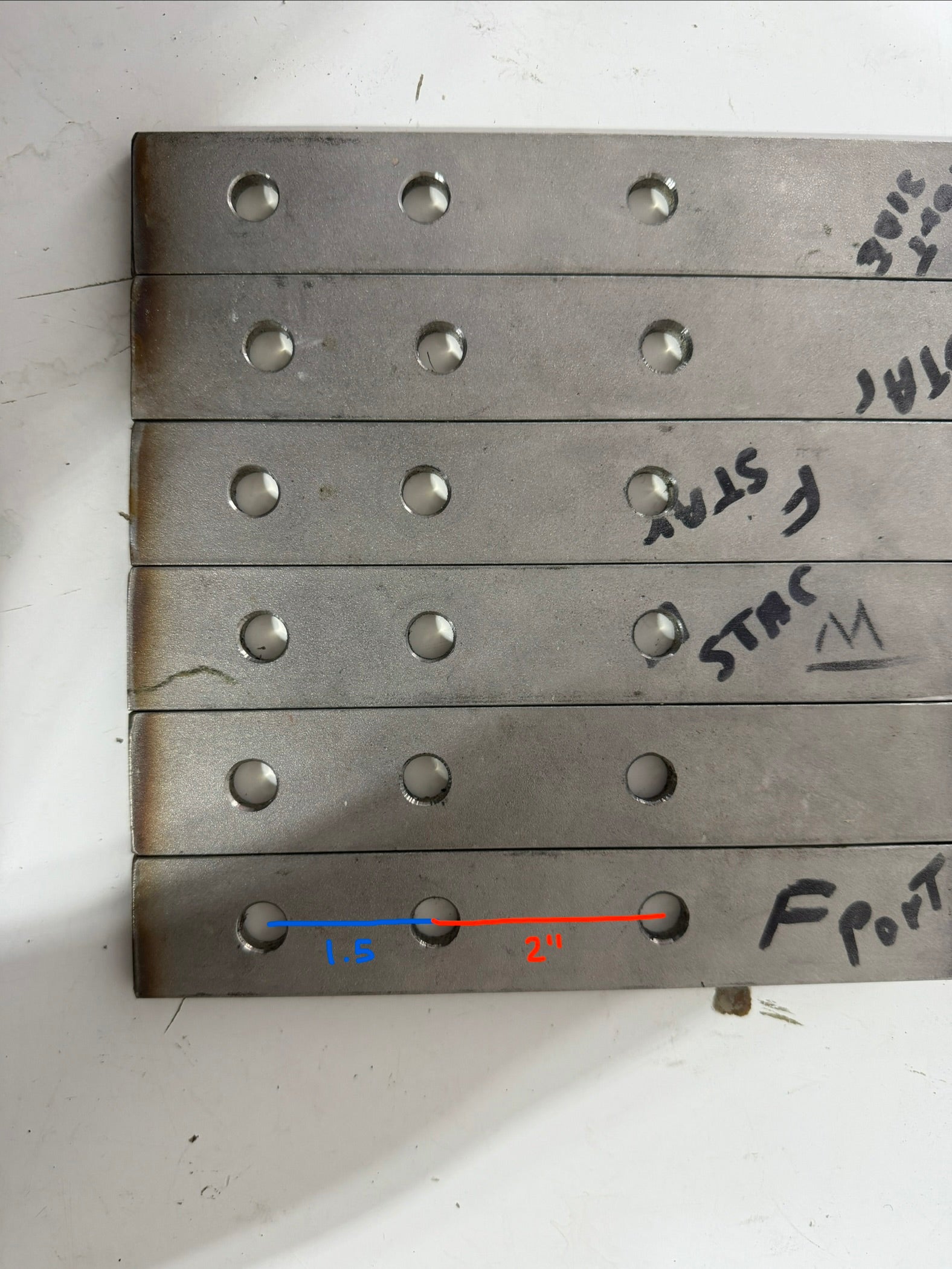 This is a brand new never install set of 6 chainplates. Originally pulled from an allied Seabreeze 33. The chainplates are 11 1/2" total length and are 1 1/4" wide x 1/4" thickness. Stainless steel. The holes are 7/16" diameter for fasteners. The hole measurements are shown in the photos. You will get the back - mid - front -- port and starboard side for each.
