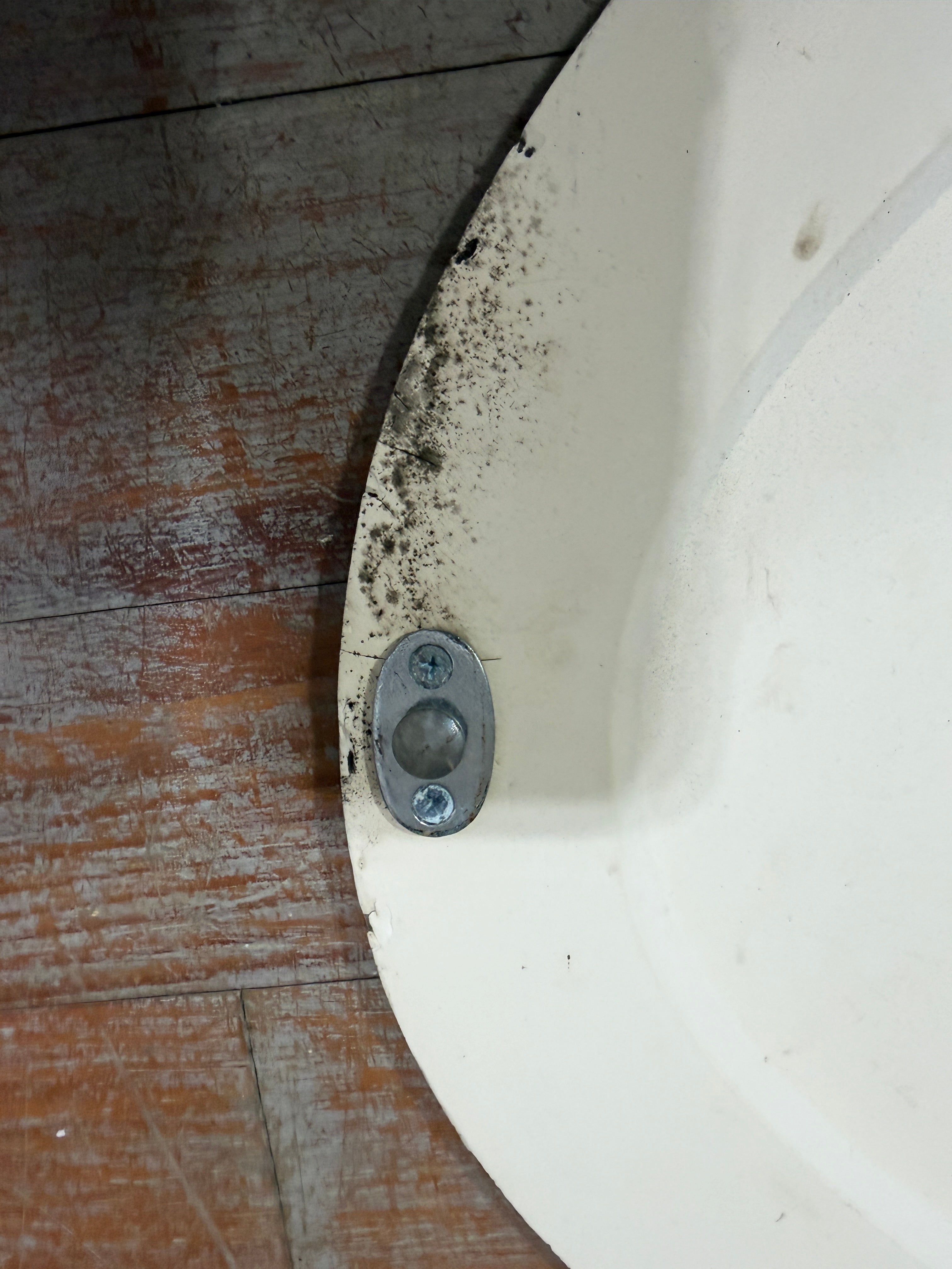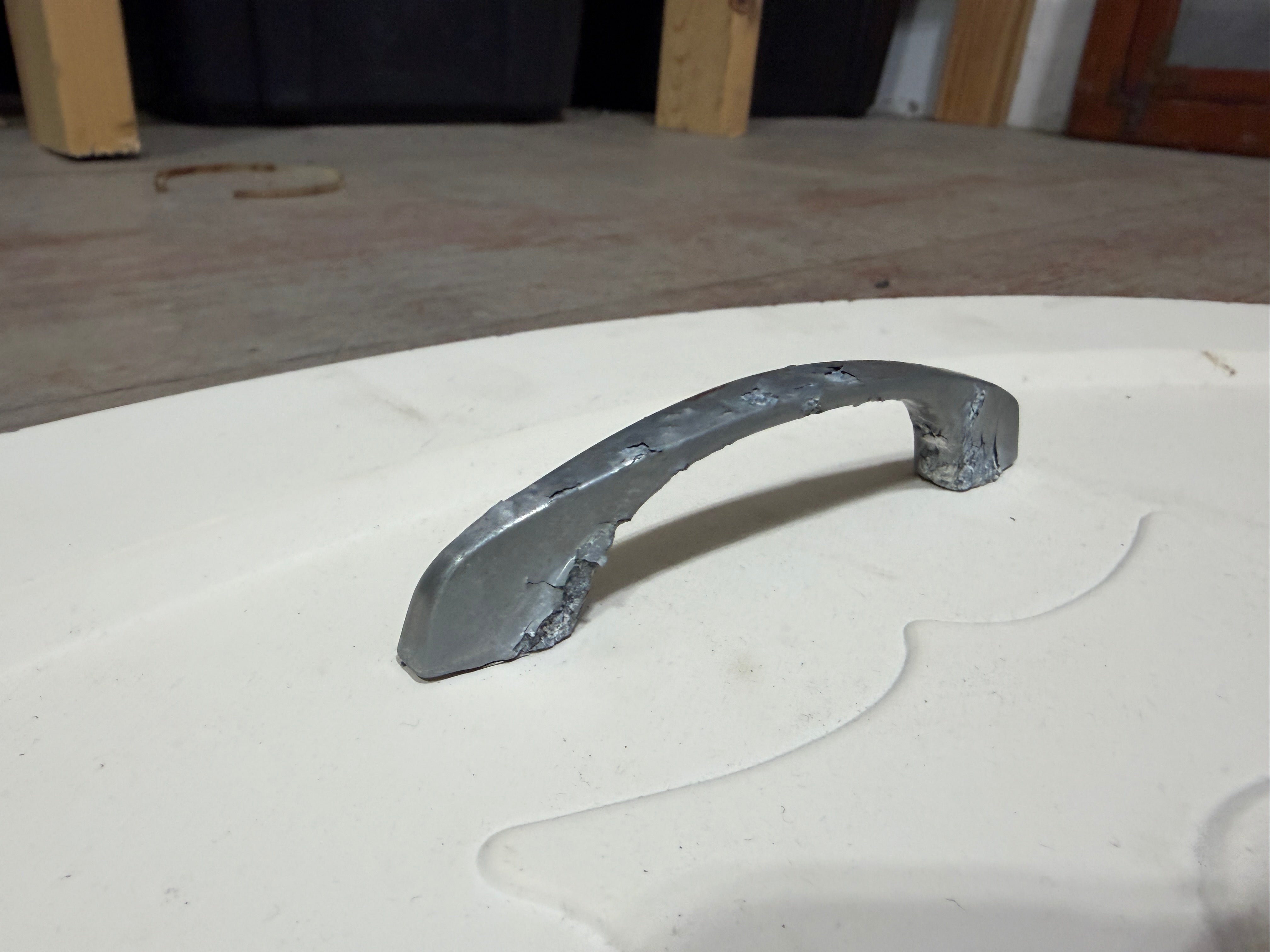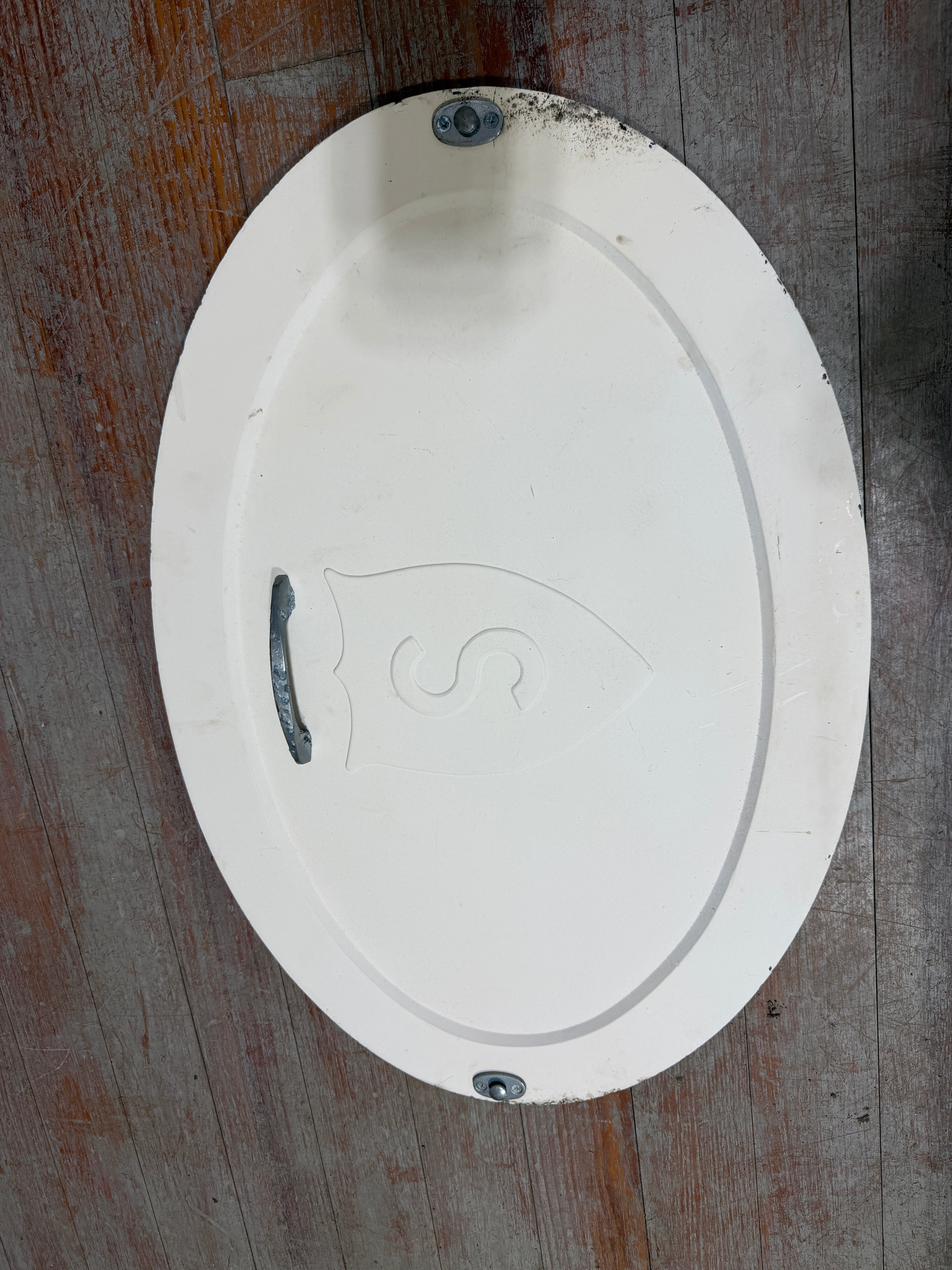 Shields 30 Fiberglass Door. 25 1/2" long x 17 1/2" wide. Has some imperfections to the edges. The handle is pitting.