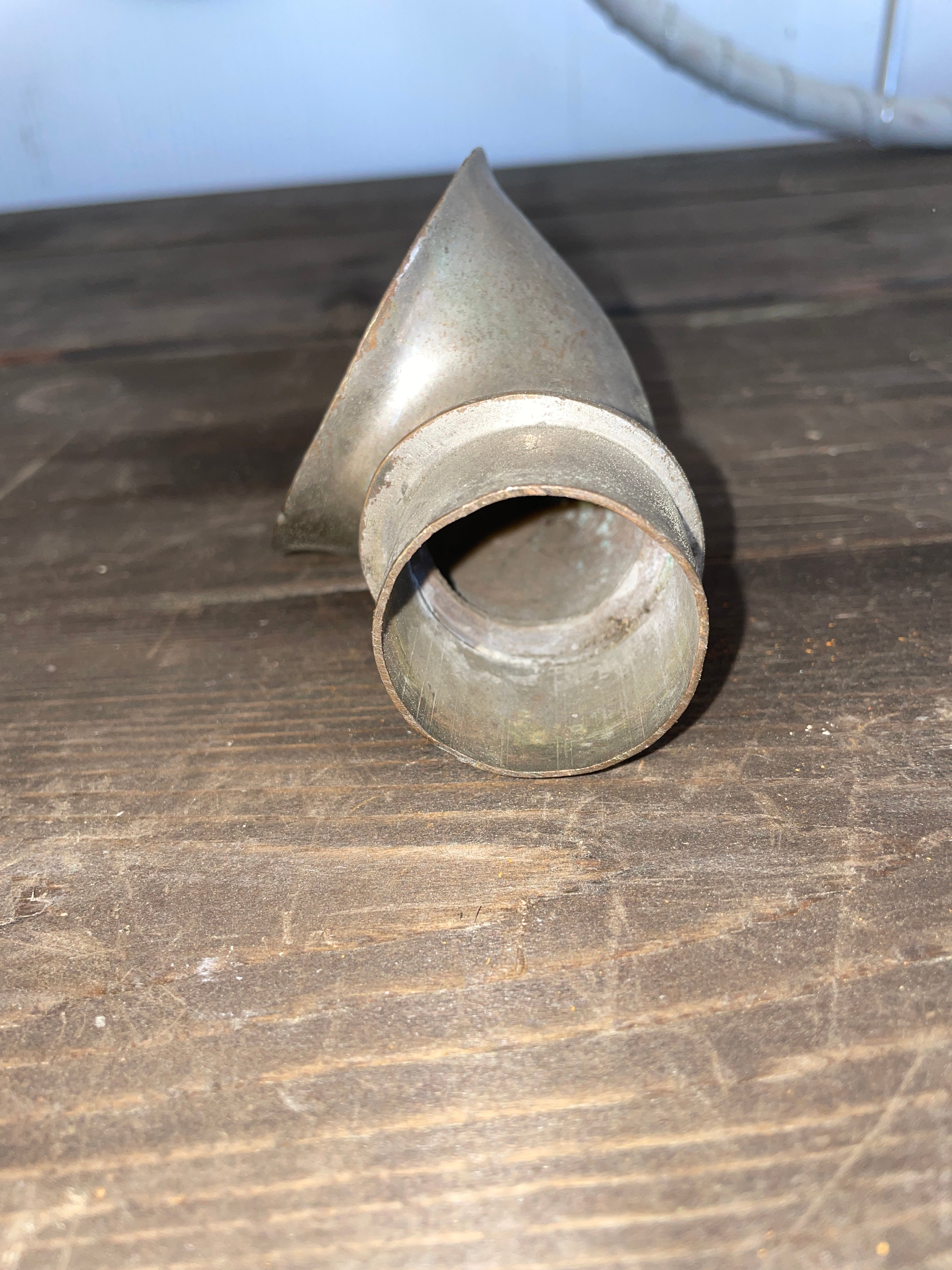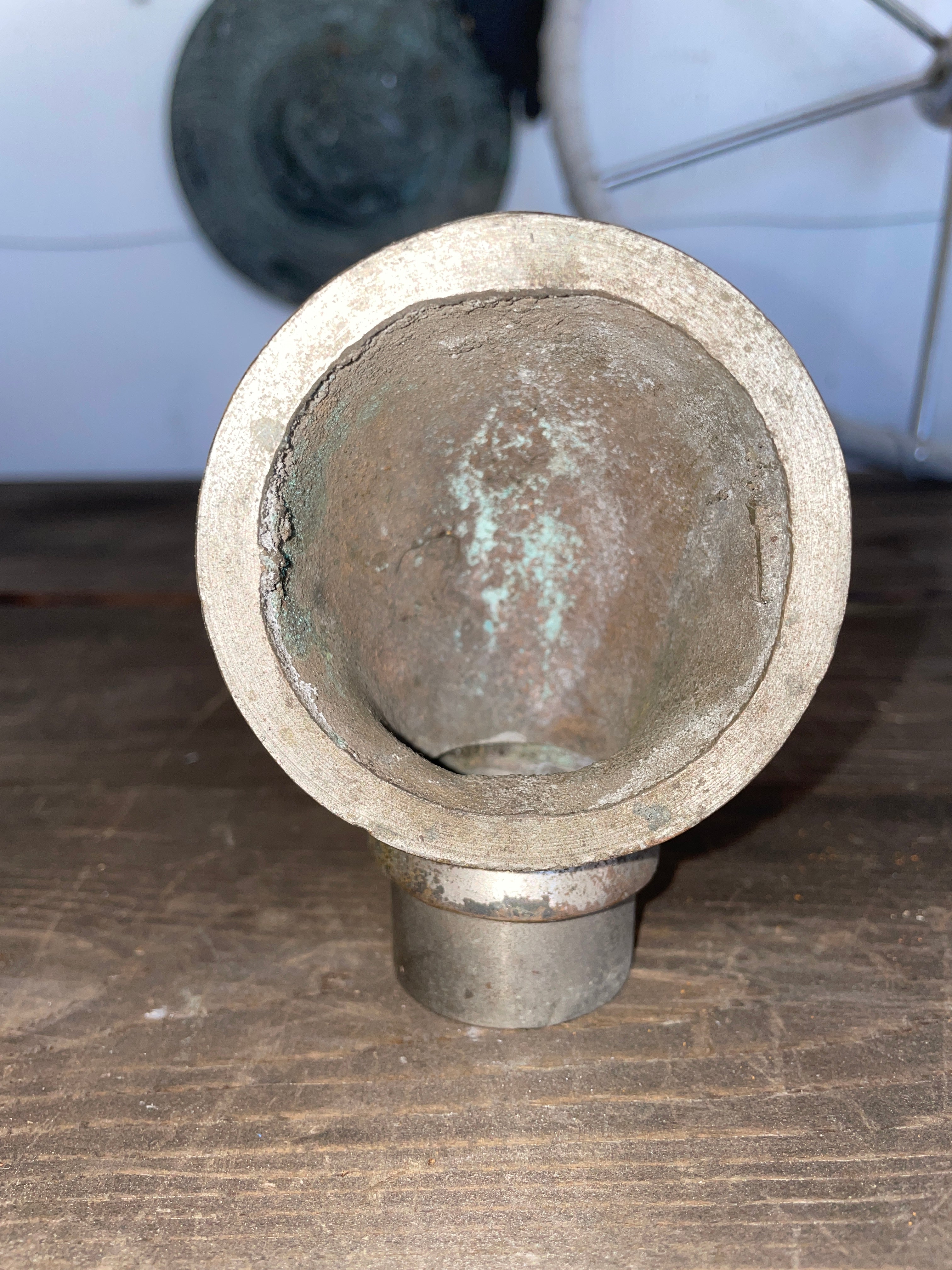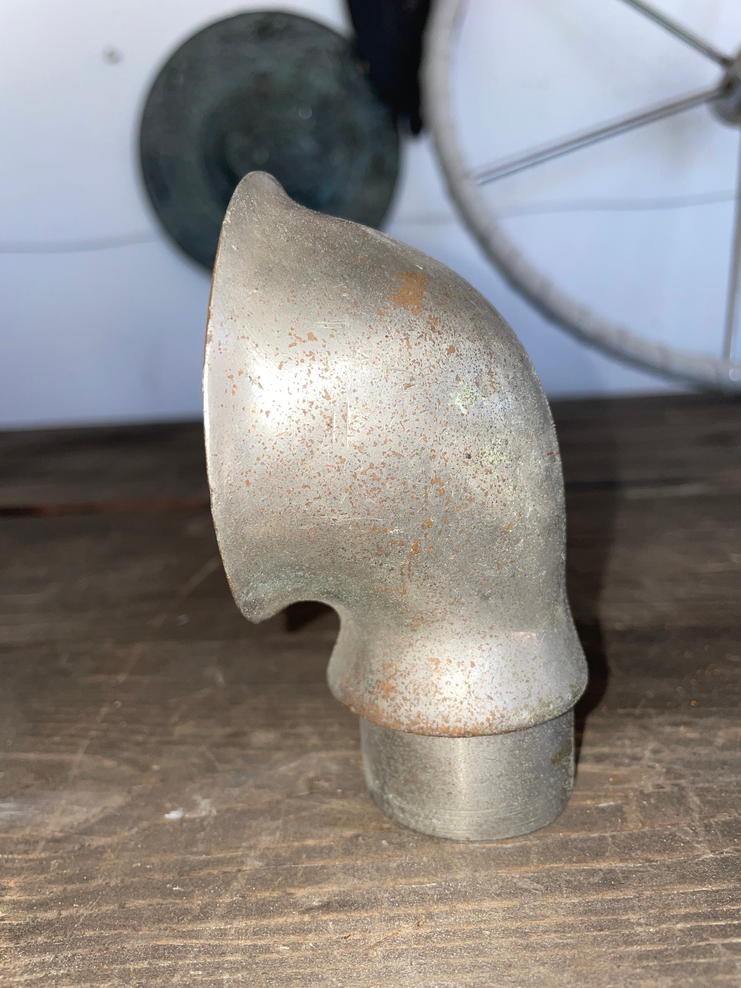 This small dorade vent has a 7/16” base. It stands 4 1/4” tall. The vent opening is 3 5/16” diameter. It is in good condition, some markings on the surface but would clean up.