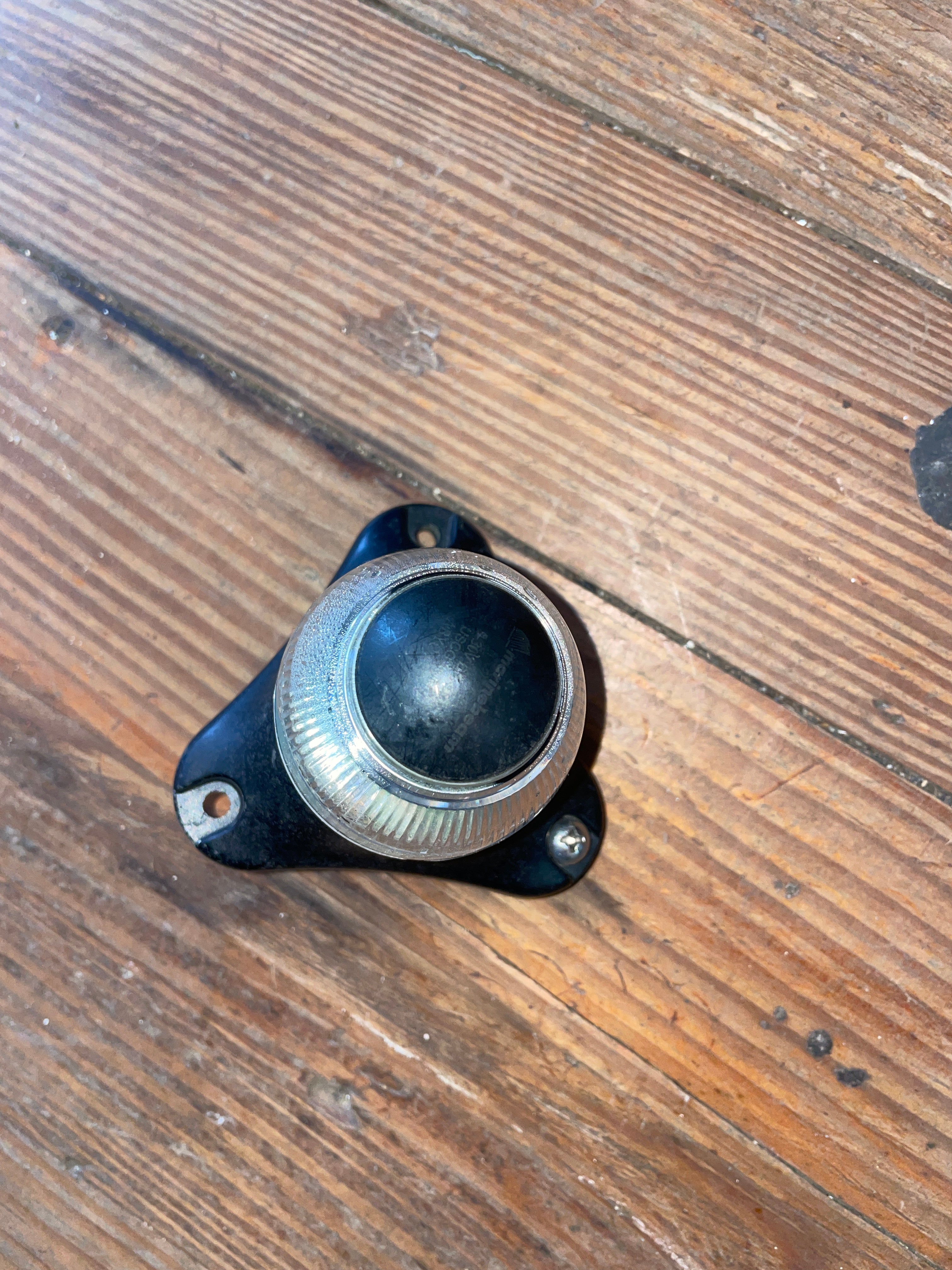 This small mast head light looks to be in great condition even though it is untested. There looks to be some condensation in the plastic globe. The base is a triangle that measures 3 1/4”. The bolt pattern is 2 9/16” apart.