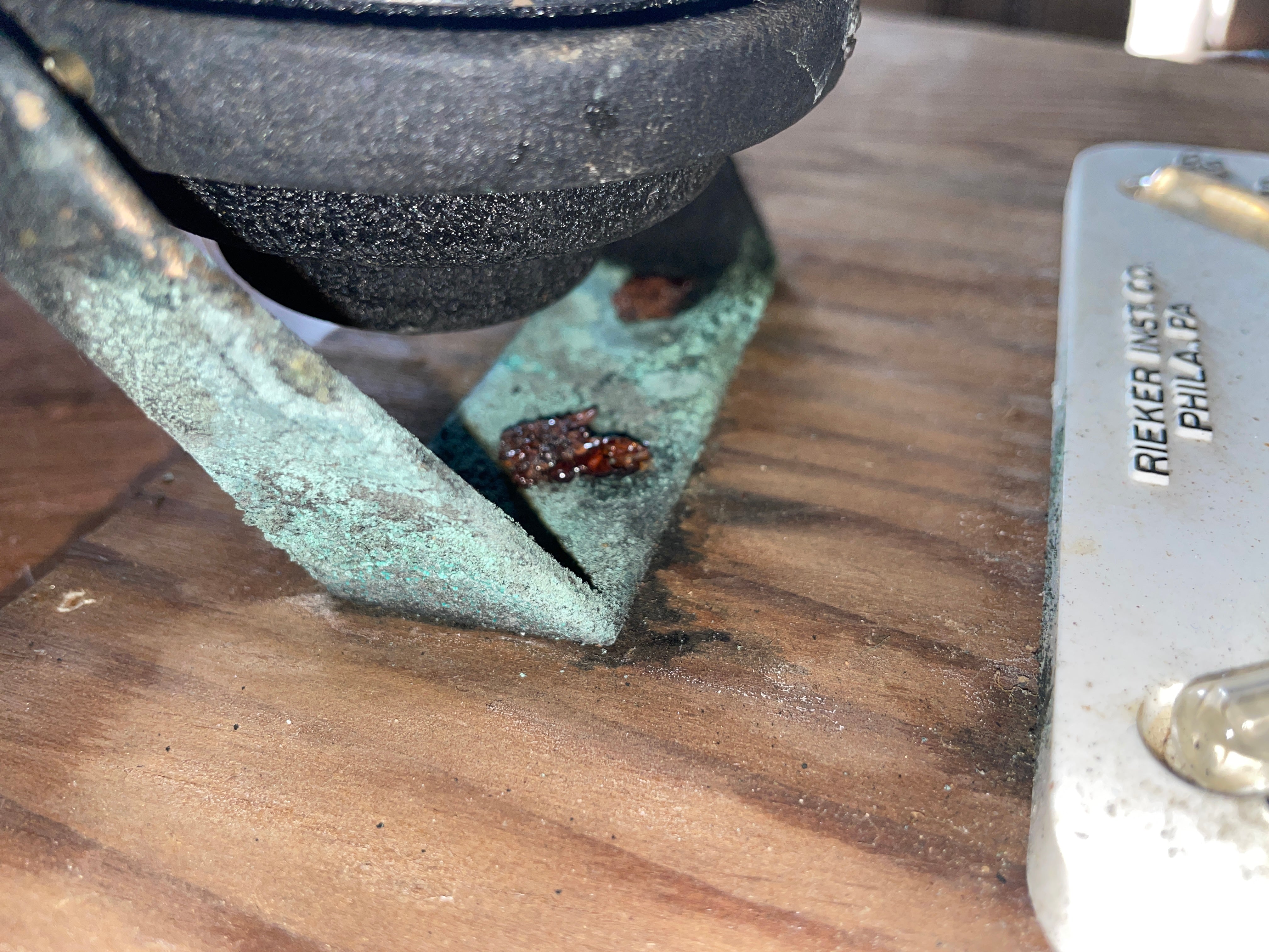 This small ritchie compass is in good condition. The dome and liquid are in great condition however the mounting base of it is corroding badly. It may clean up nicely. This compass is only 3” diameter x 3” tall. It floats freely in its gimball. The level is included on this compass, it seems to be in working condition.