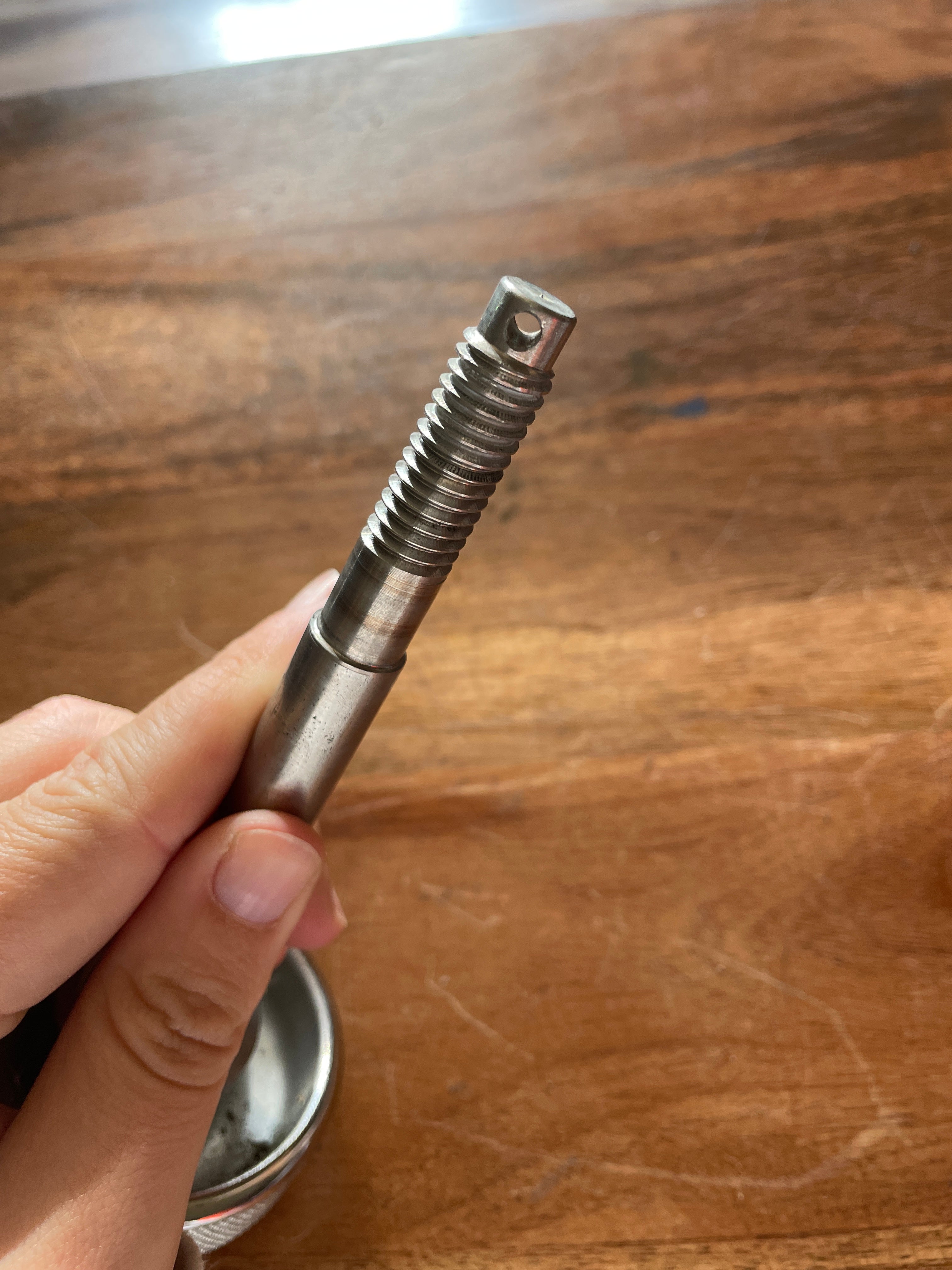 This stainless steel Edson brake knob is in excellent condition. The threaded area is 3/8” diameter. Total length of the threaded rod is 4 3/4”.