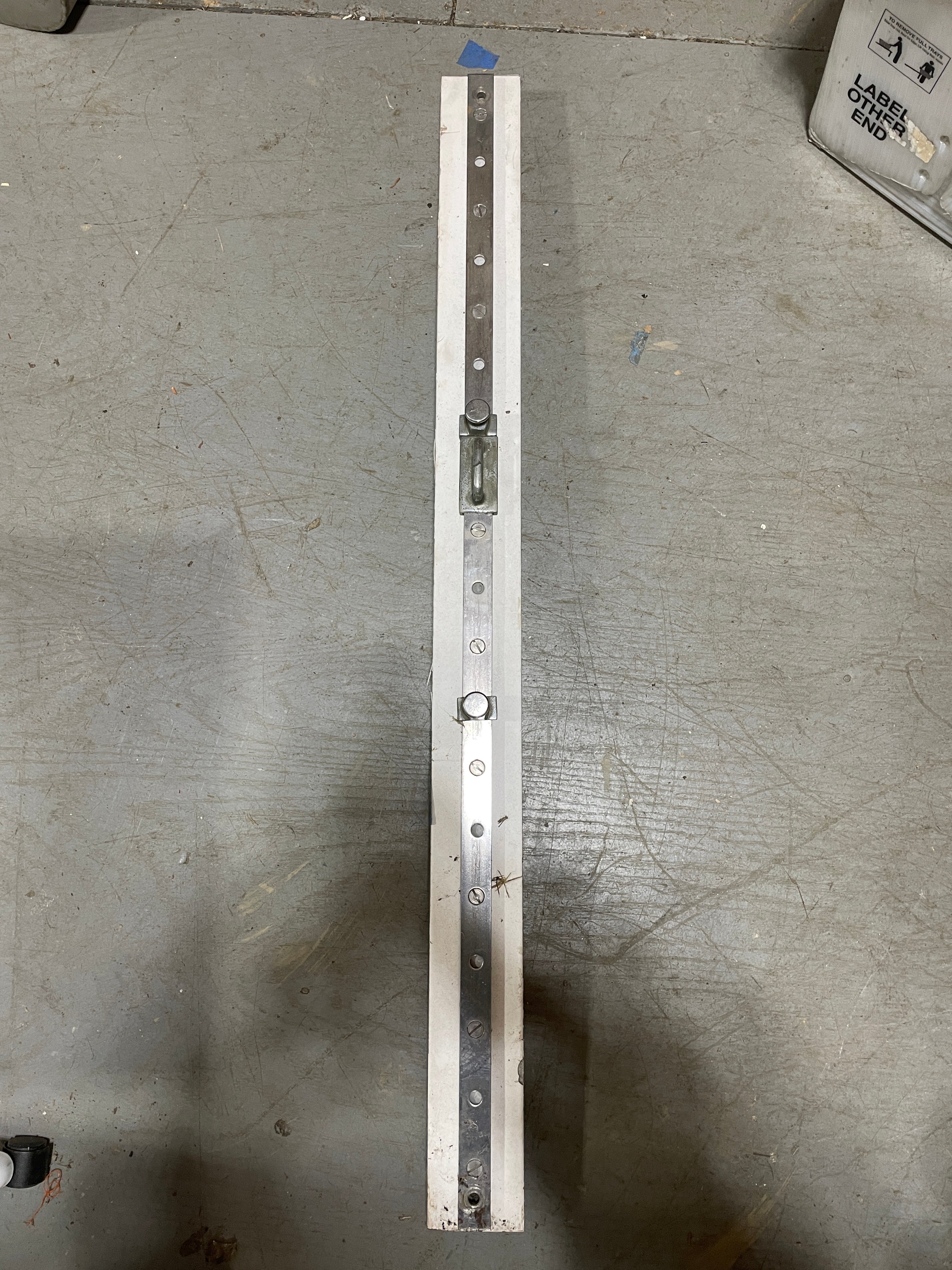 This small stainless steel track (only the track not including the riser in this) is 39 5/8" long. The track is a 1" diameter. The Riser is steel. It measures 40" long x 3" wide x 2 1/4" at the tallest measurement which is in the middle since it is slightly curved. Comes with 2 adjustable pull top stoppers and the middle car has an eye diameter of 1 1/2" x 5/8".