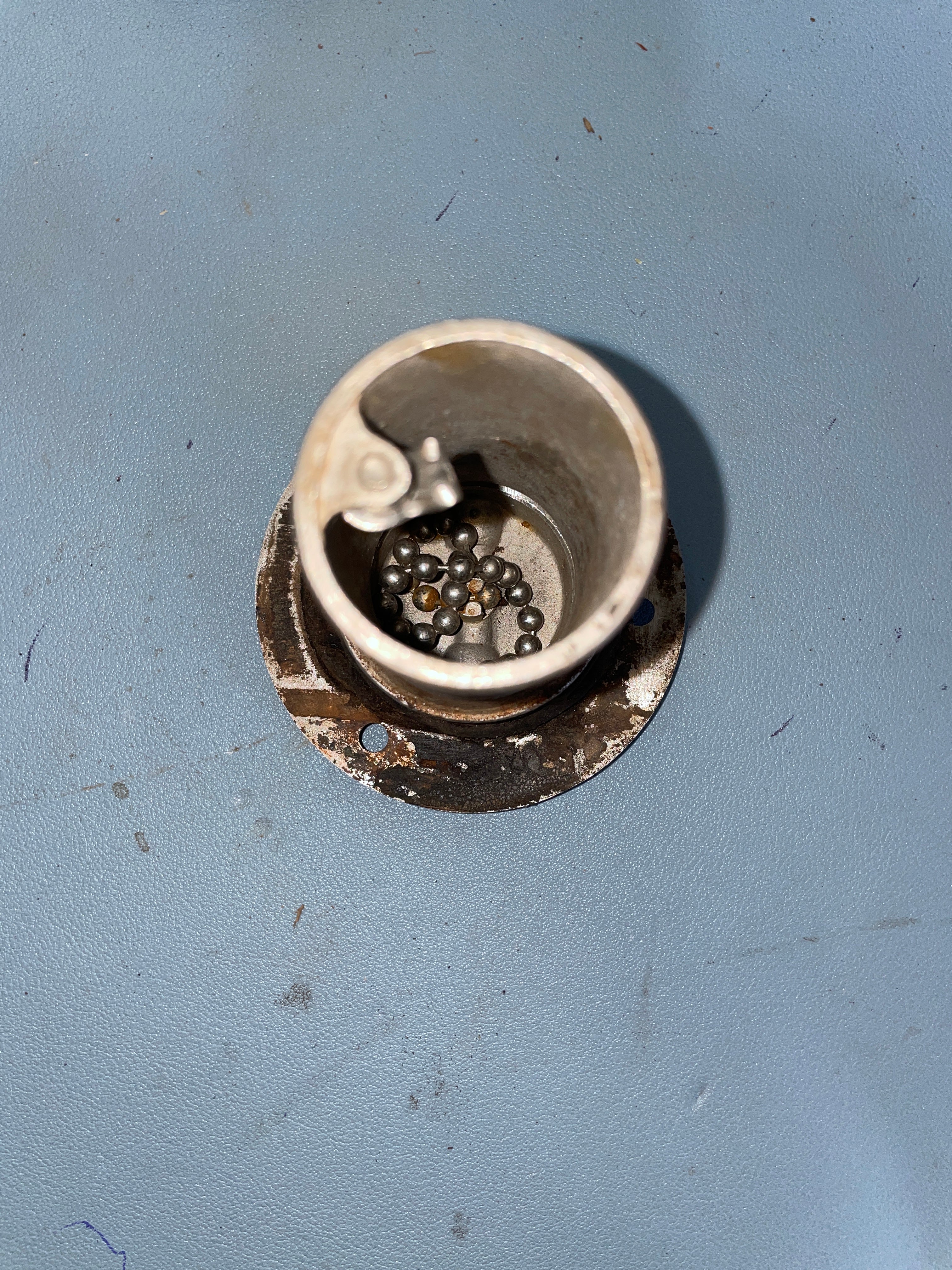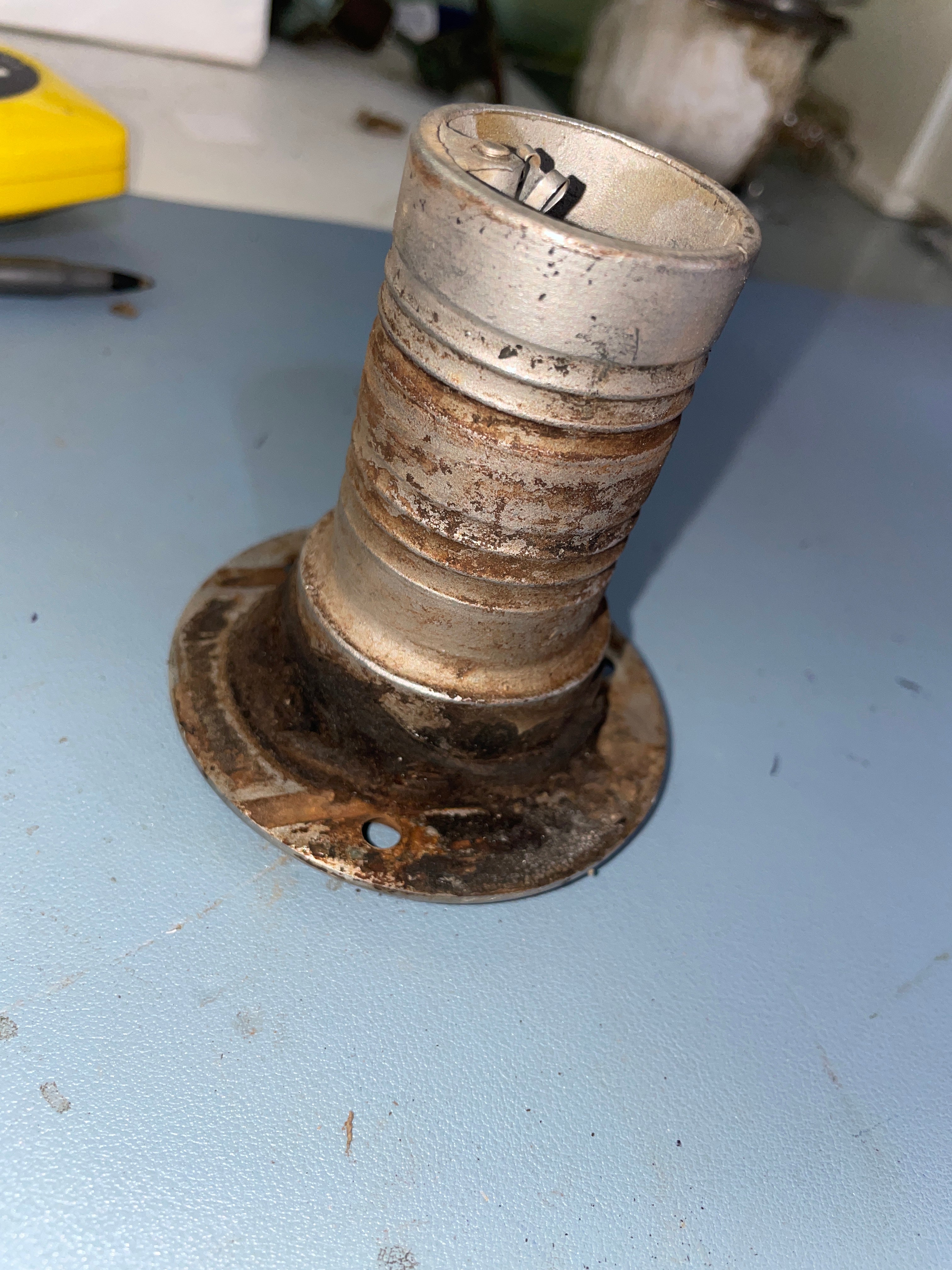 This stainless steel diesel deck plug is in great condition. The pipe is 1 1/2" diameter. The top is 3" diameter. The key is 1 3/16" width x 1/4" diameter. Sits 3 1/8" deep.
