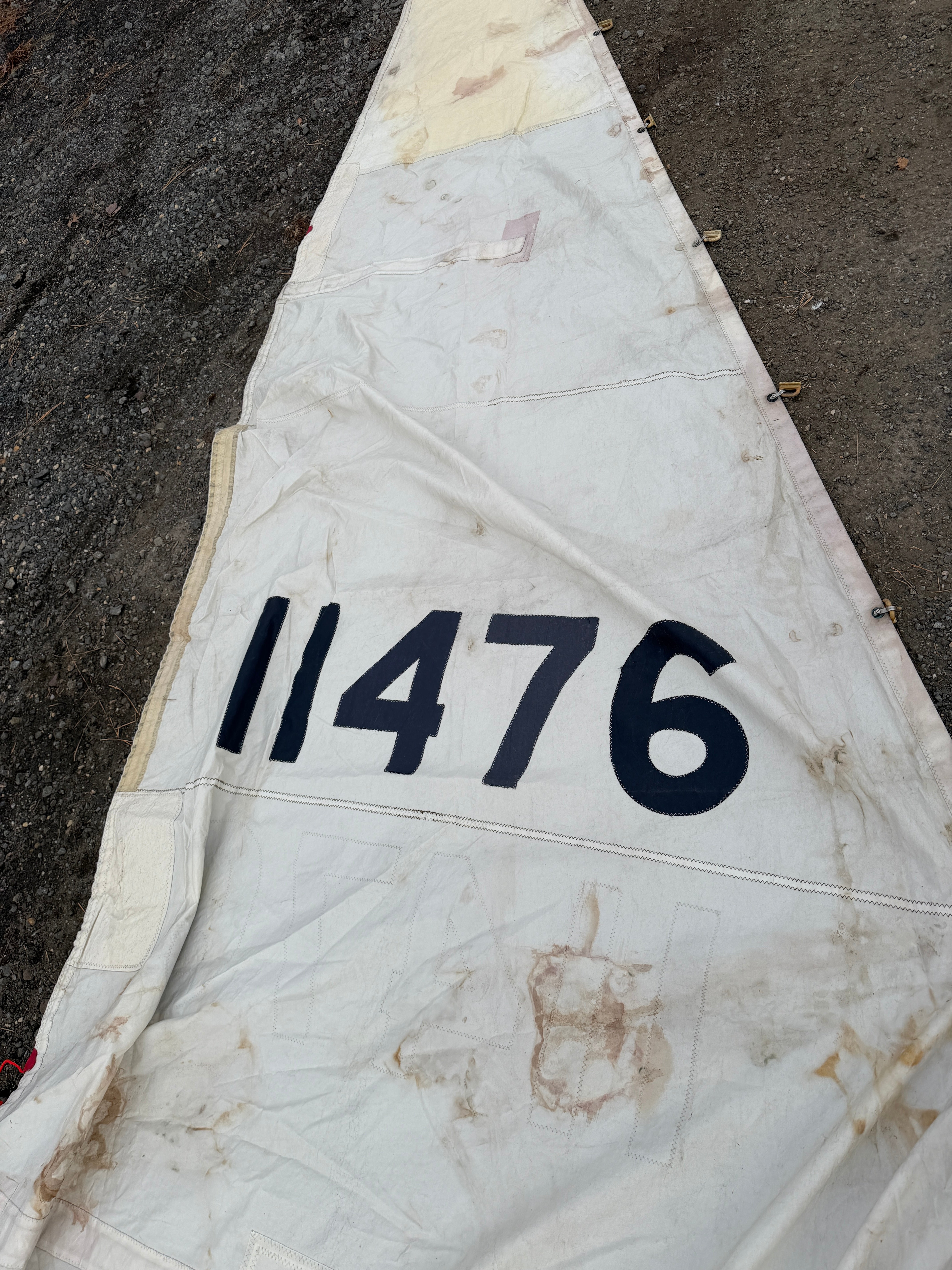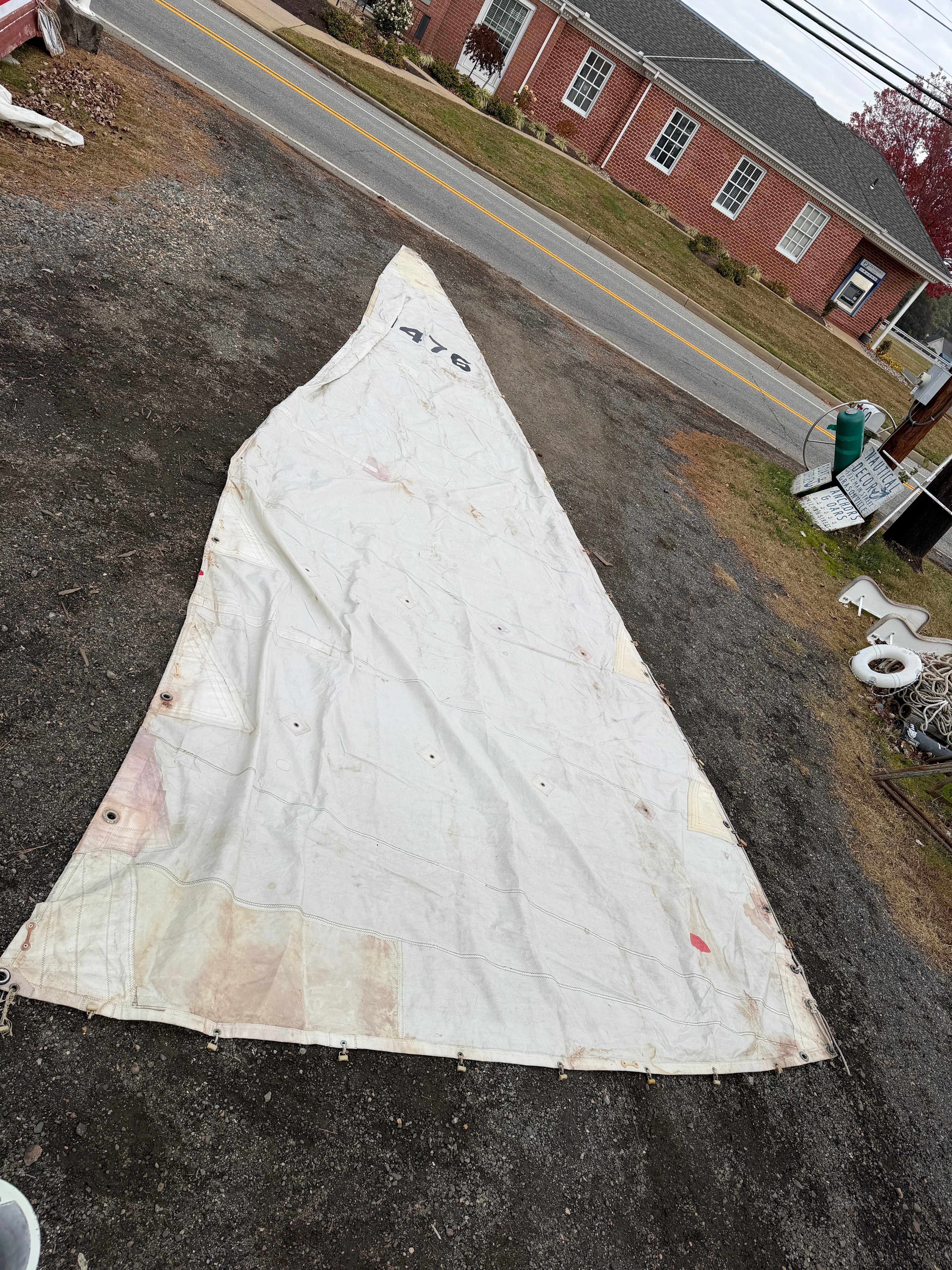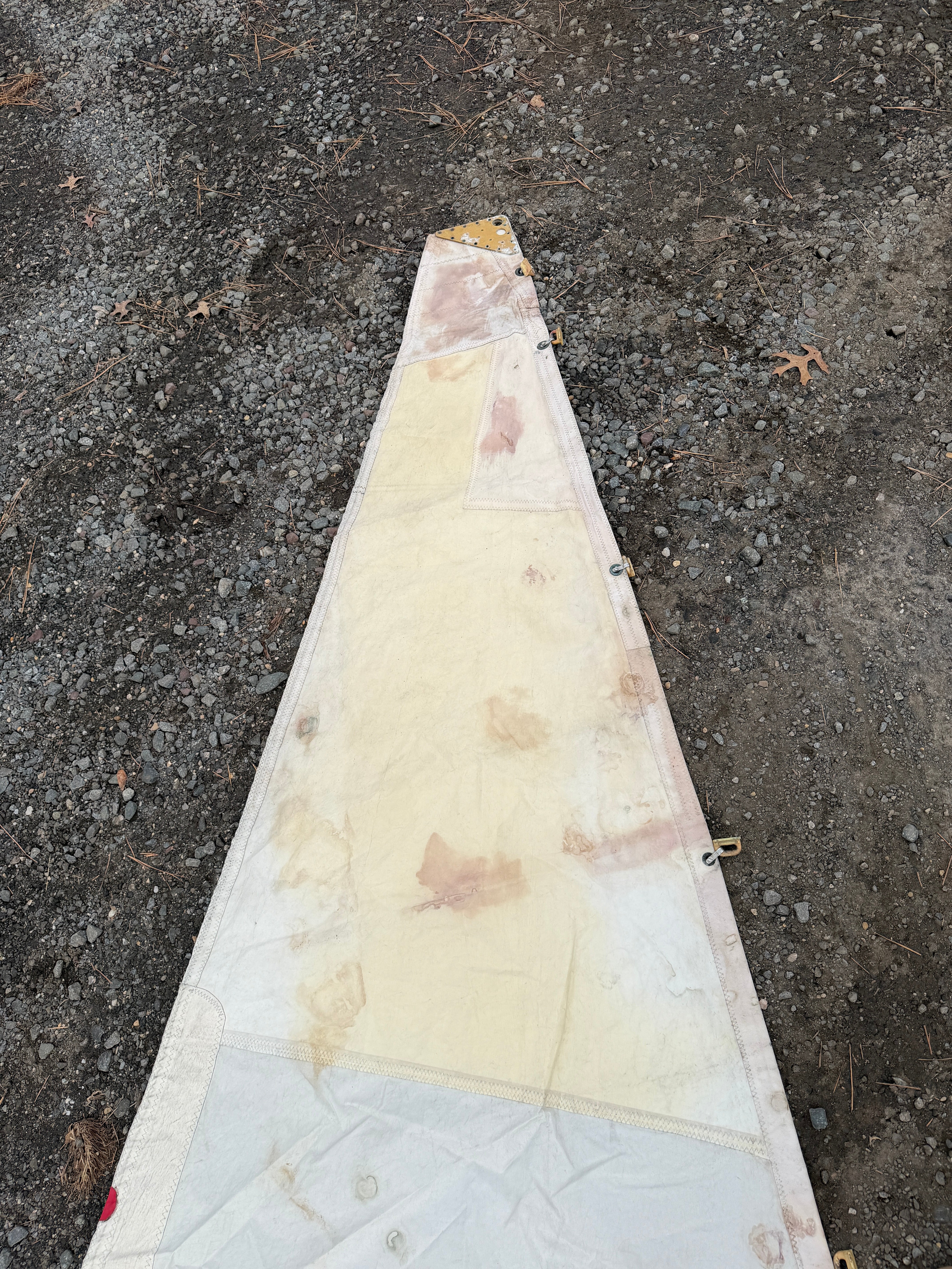 This mainsail is in as is condition. Very soft. Very dirty. The slides are 7/16" diameter.the P is 30'. The foot is 9'3" in length. NO BAG. I don't think it's symmetrical but no other measurement was given.