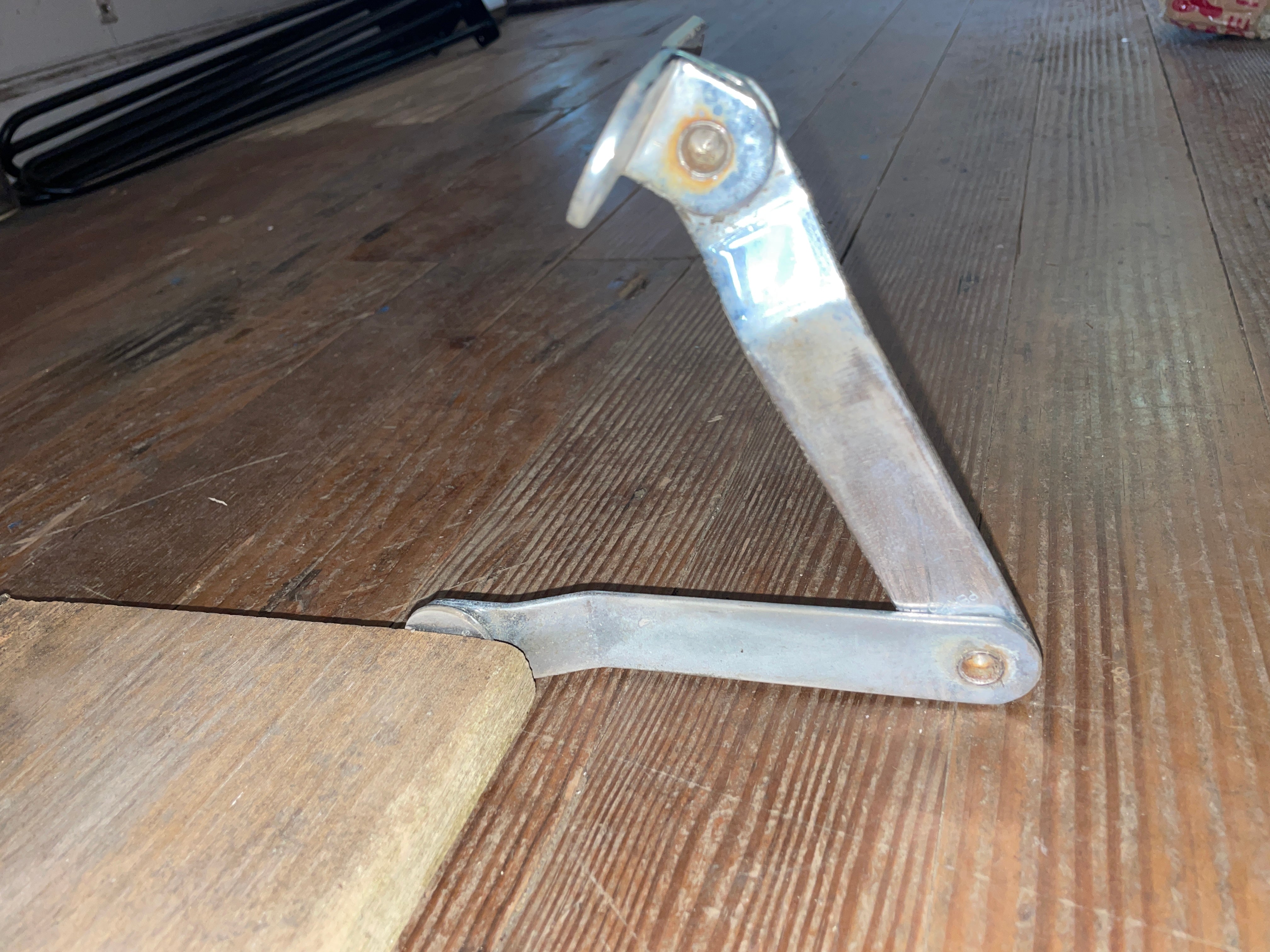 This teak folding foot rest is in good condition, refinish the teak and it will be like new! We have 2 of this style available. One is 12” long and the other is 15” long. The stainless steel hardware is in great working condition. The step is 3/4” thick x 7 1/2” wide.