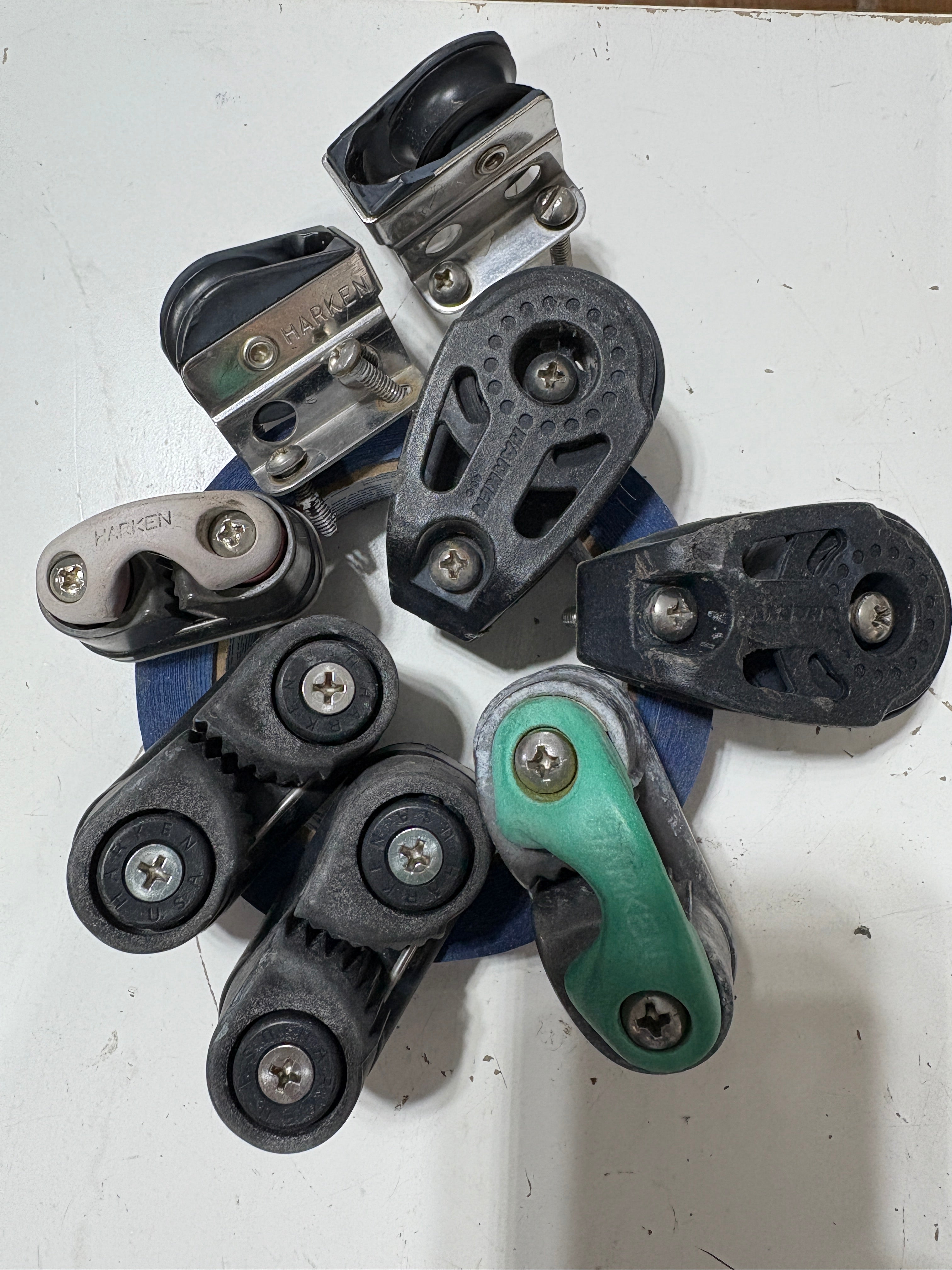 Traveler and Deck Hardware from J29, all Harken Parts - Cam Cleats & Blocks