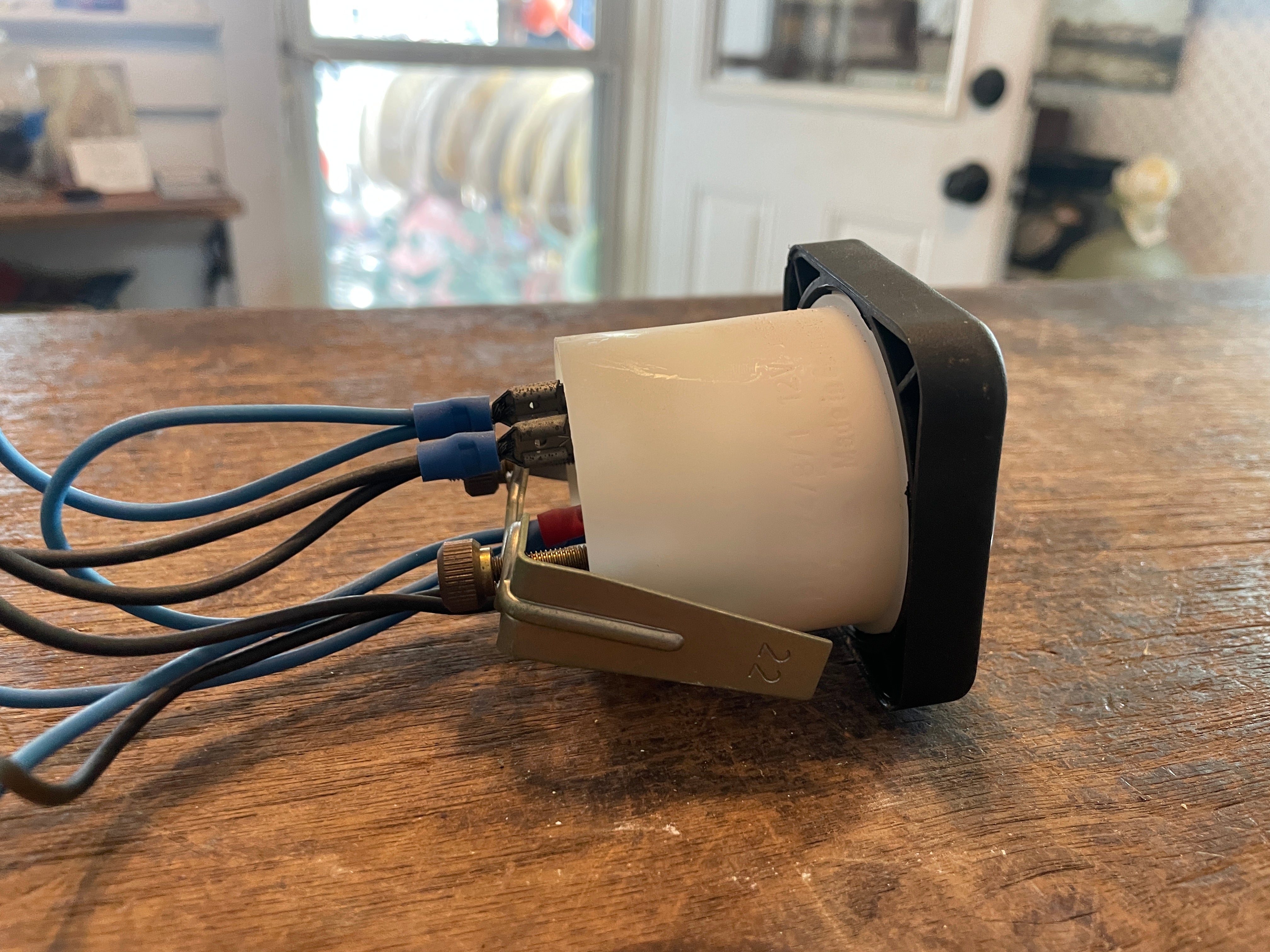 This VDO thermostat gauge is in great condition. The face is 2 1/2” long x 2 1/2” wide and is 3 1/4” deep. Comes with mounting bracket.