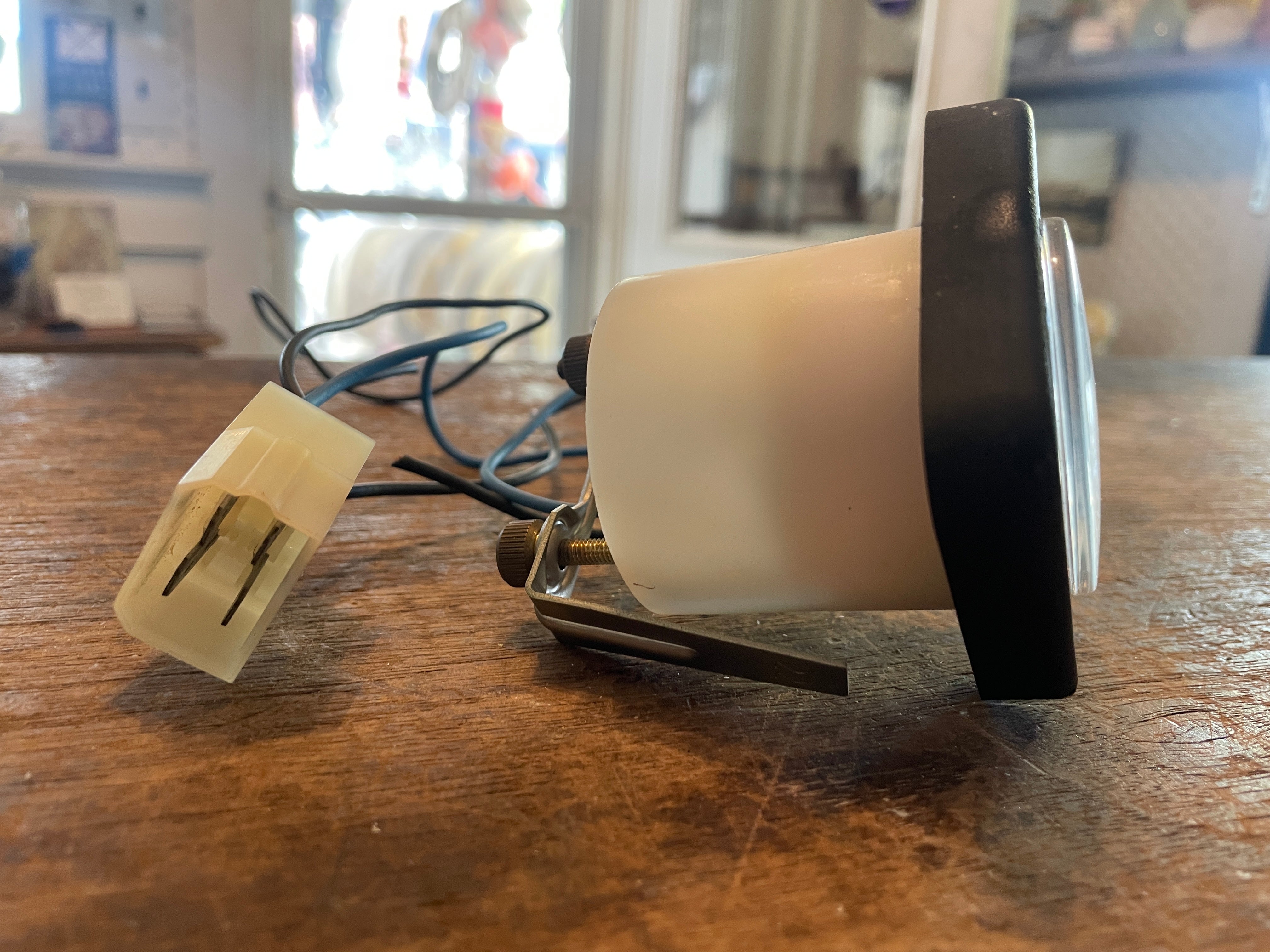 This VDO volts gauge is in great condition. 8-16 volt. The face is 2 1/2” long x 2 1/2” wide and it is 3 1/4” deep. Comes with mounting bracket.