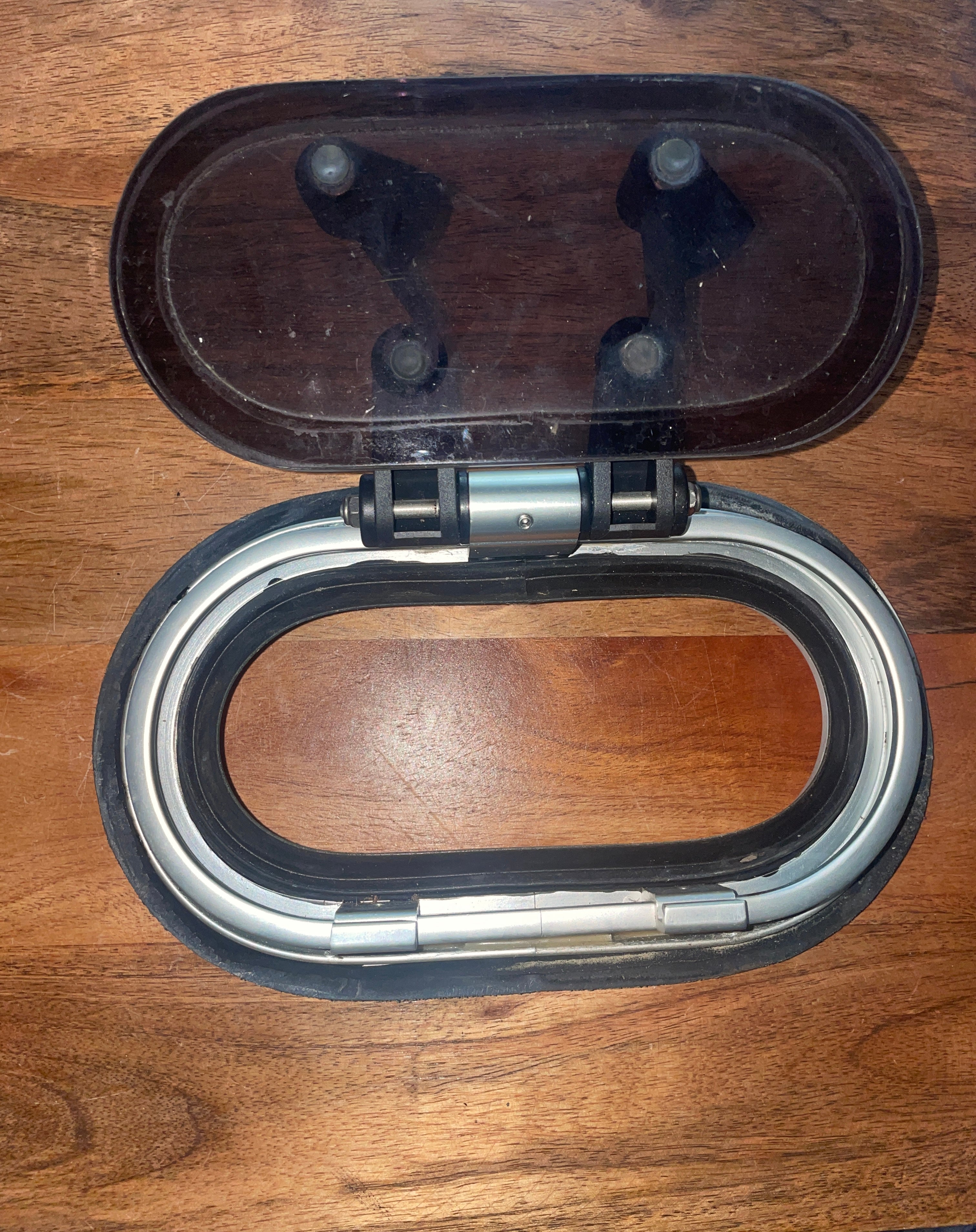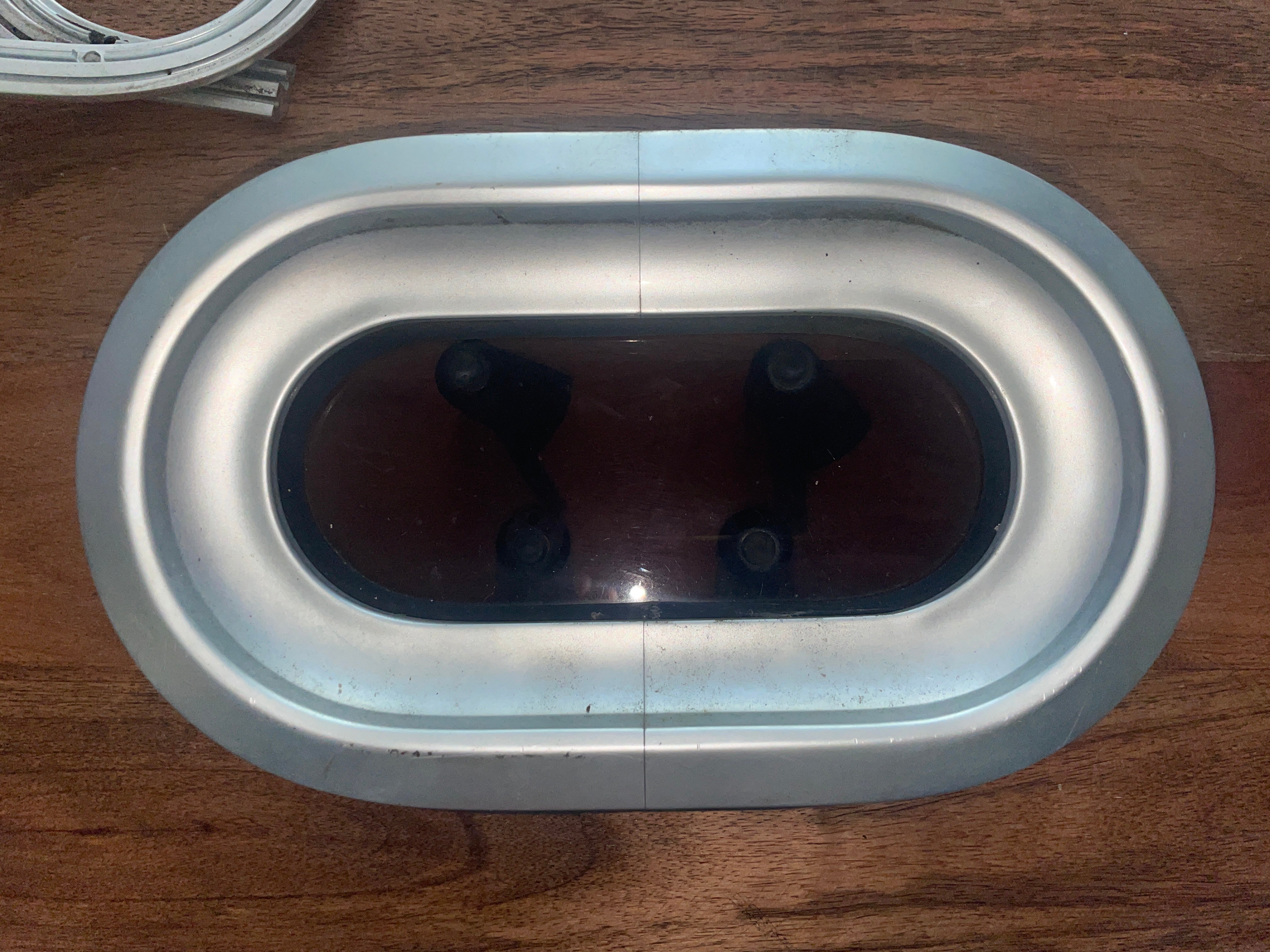 This vetus PM111 oval opening porthole is in like new condition. It was installed then uninstalled within a month of when the boat was destroyed. Watertight seal. The external dimensions are 9 5/8” long x 5 3/4” wide. The cutout dimension is 8 11/16" x 4 13/16". The corner radius is 2 3/8”. 10mm dark smoked lens. Aluminum material. Removed off an Irwin 27 sailboat.