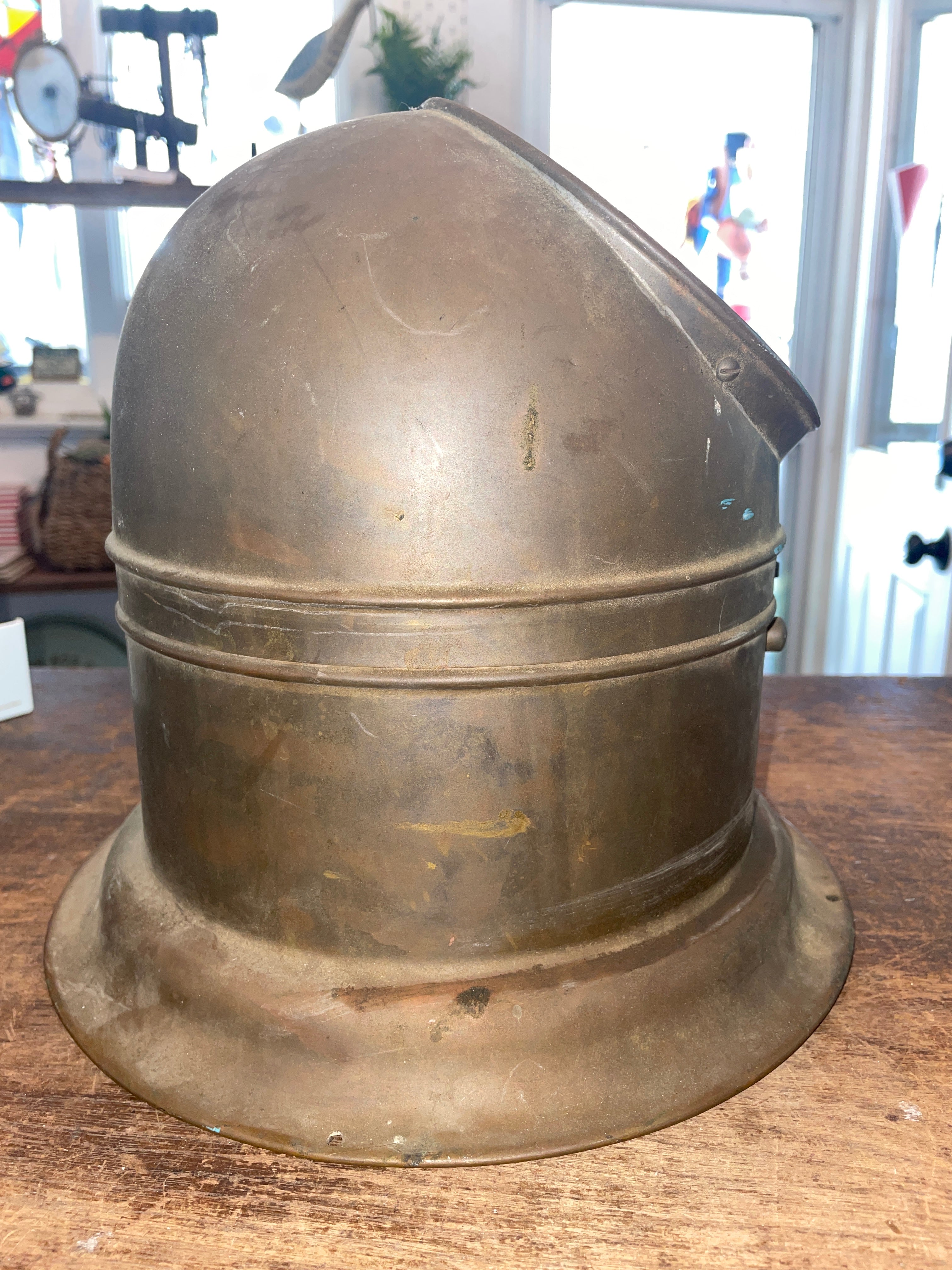 This vintage brass binnacle housing is in great condition. The base is 10 3/8” diameter. Top does twist off the base. There is a light inside at the top. Diameter of hole to view compass is 5 1/4”.