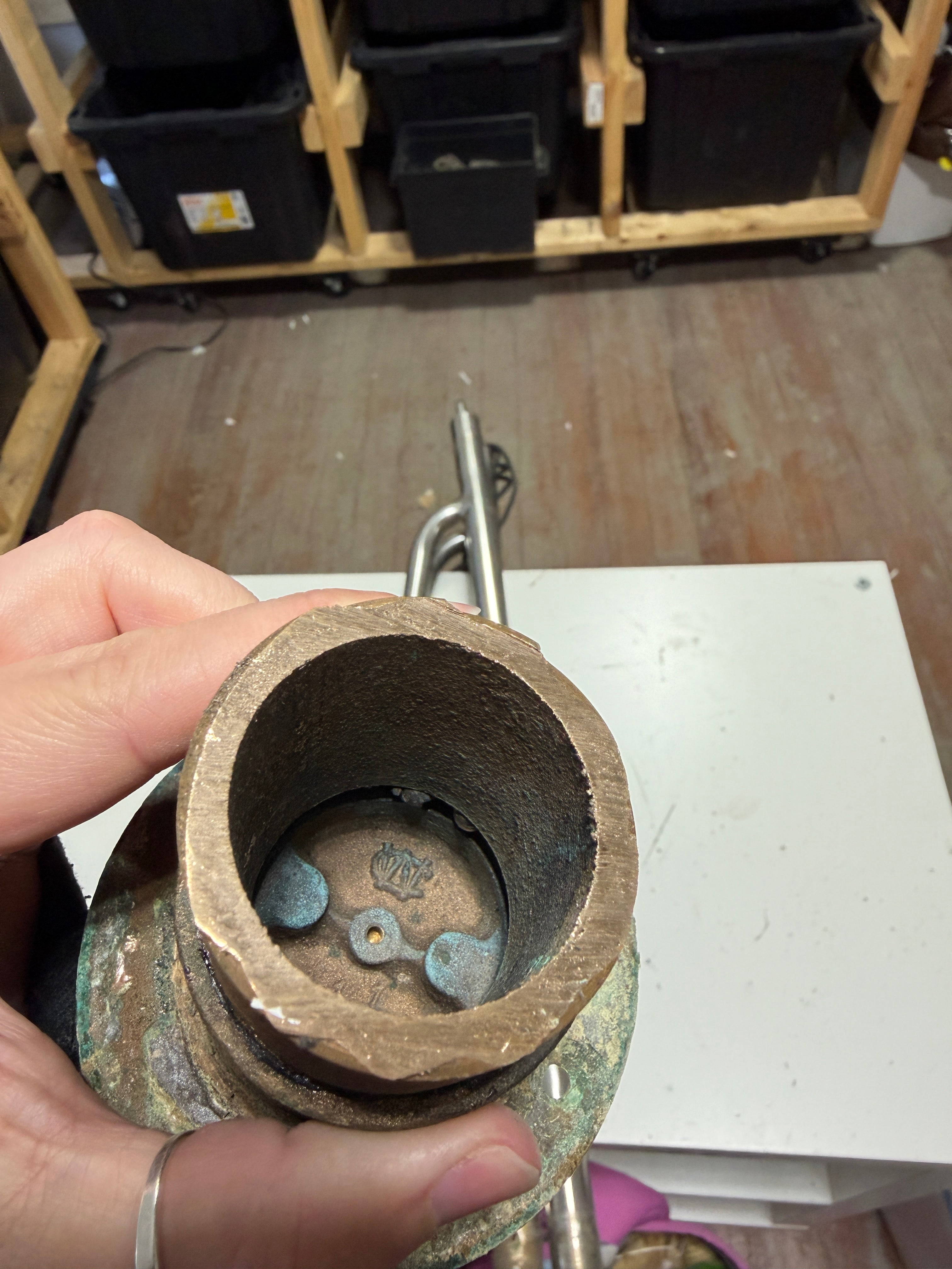 Wilcox Crittenden. Vintage Bronze Diesel Fuel Cap. 3 1/2" diameter. Has usual wear and tear from years of use. The key holes are 3/16" diameter x 1 1/16" width apart. The base is 2 1/8" diameter. Takes a 2" threaded pipe - previous has been cut.