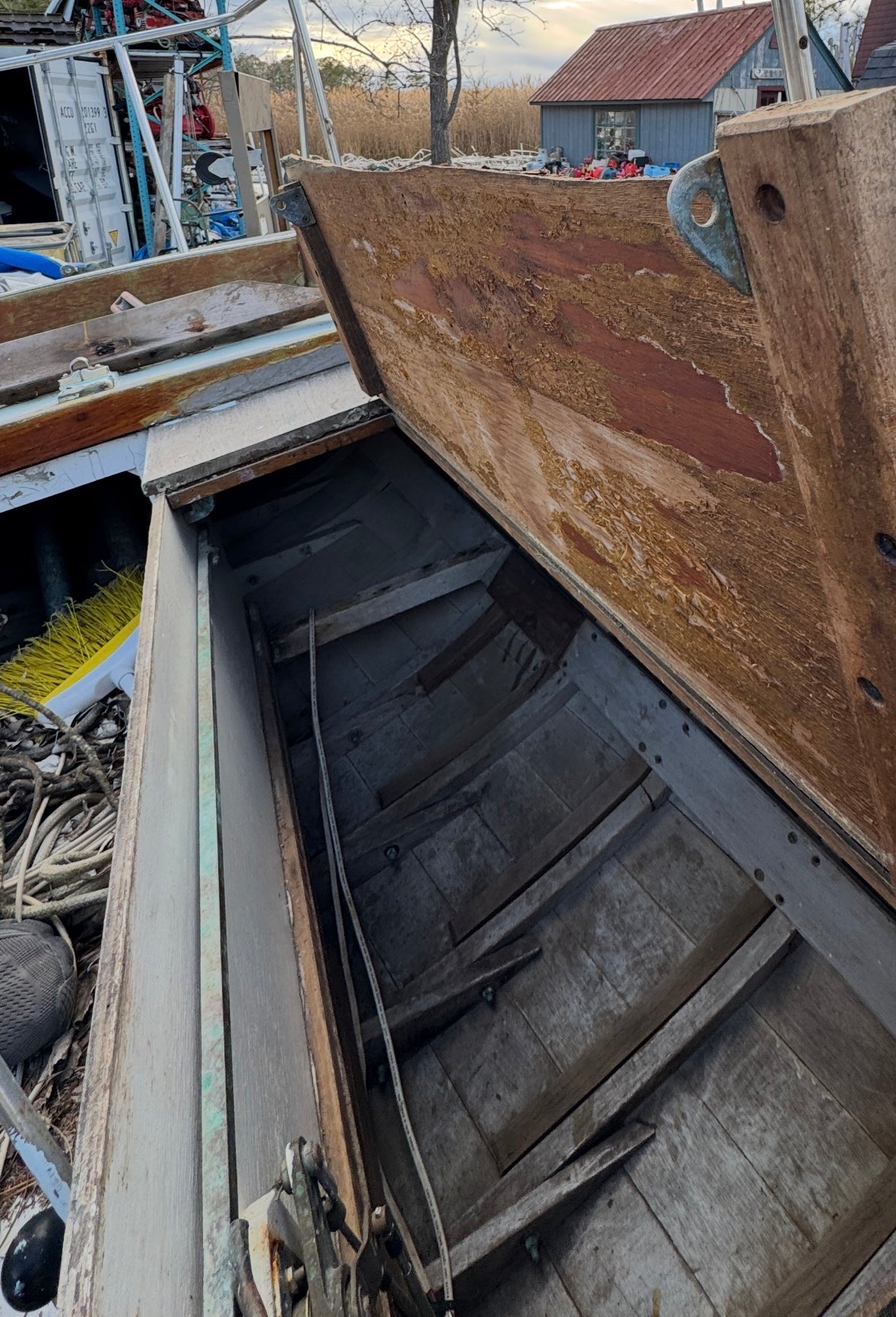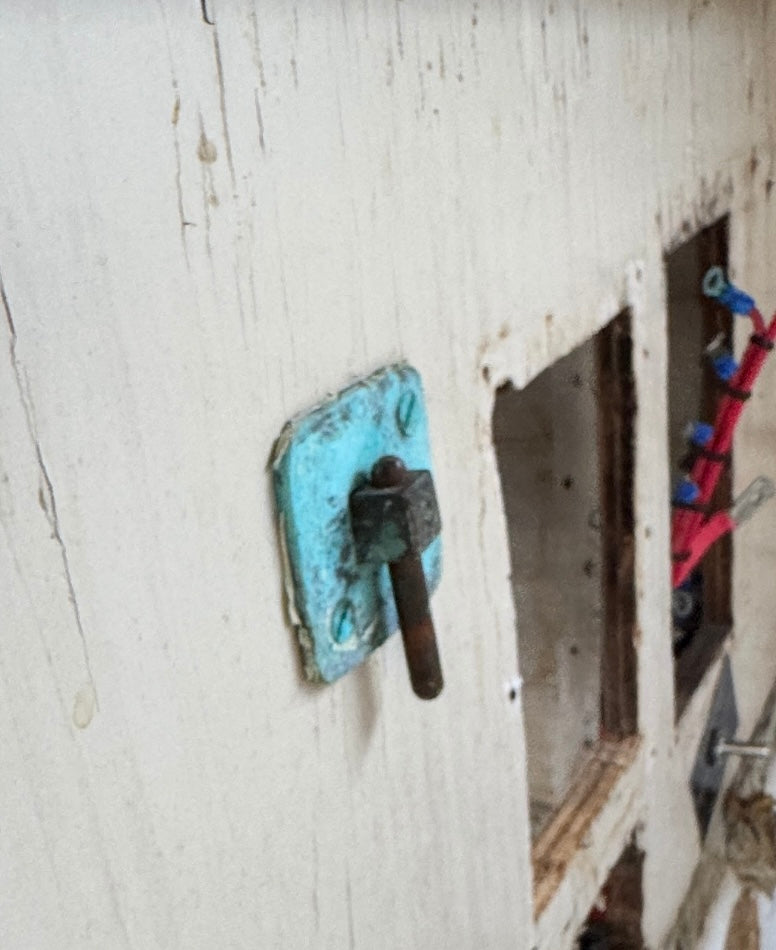 Vintage Bronze Lazarette Sliding Bar Locking System Starboard and Port sides. This is pretty cool, never seen one of these before. There is a handle that you grab on the inside to pull it to lock the lazarettes in place and then push the bar to release!