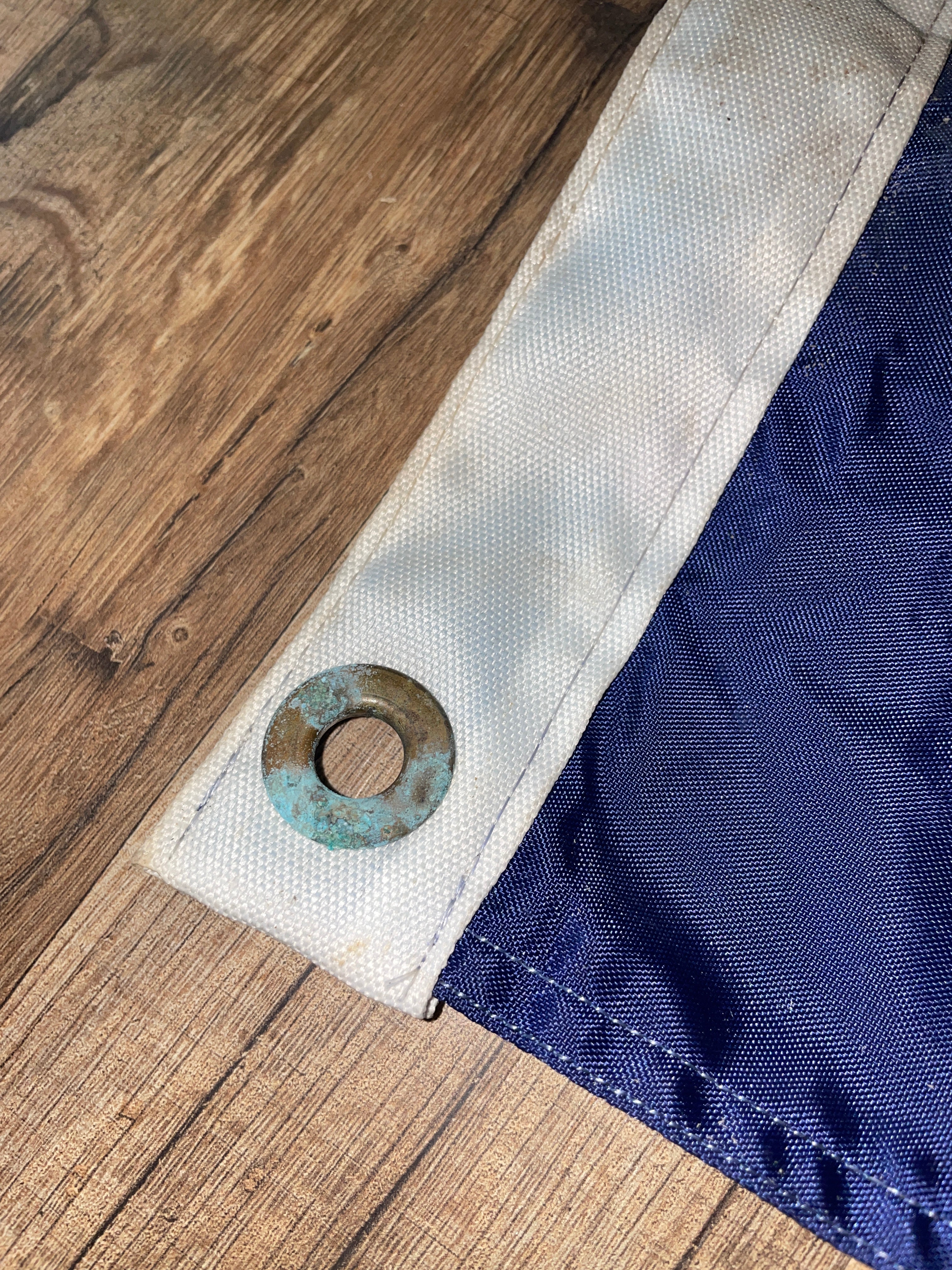 This vintage Chesapeake bay maritime museum flag is in great condition. It is dirty but has no rips or tears. Measures 18” long x 12” wide.
