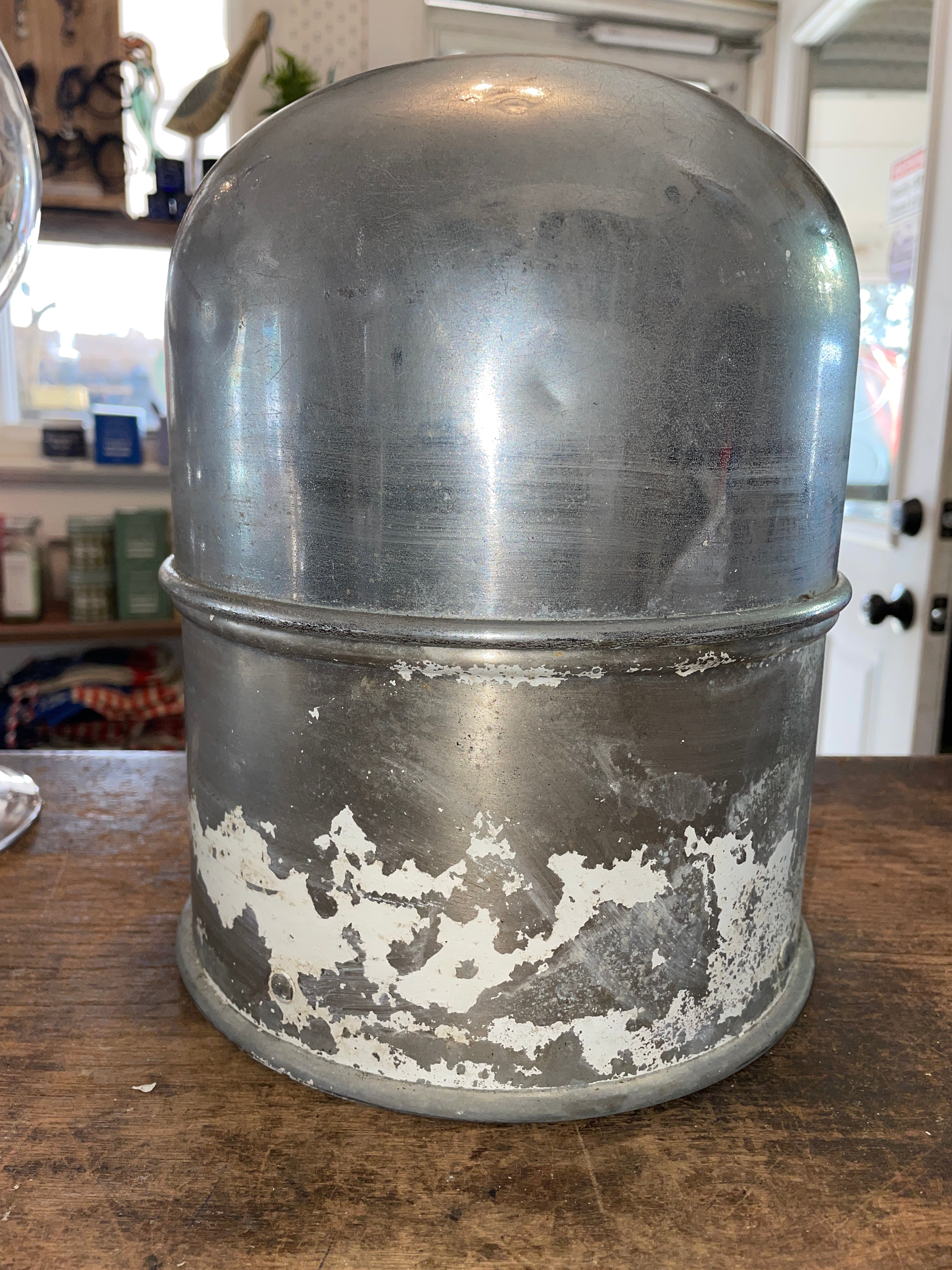 This vintage kelvin white compass housing is in good condition. The top removes from the bottom. It is missing the little knob for the door to slide, still slides very easily without it. The base is 8” diameter and stands about 10” tall. The chroming on the base has started to come off. There are really no dents anywhere on it.