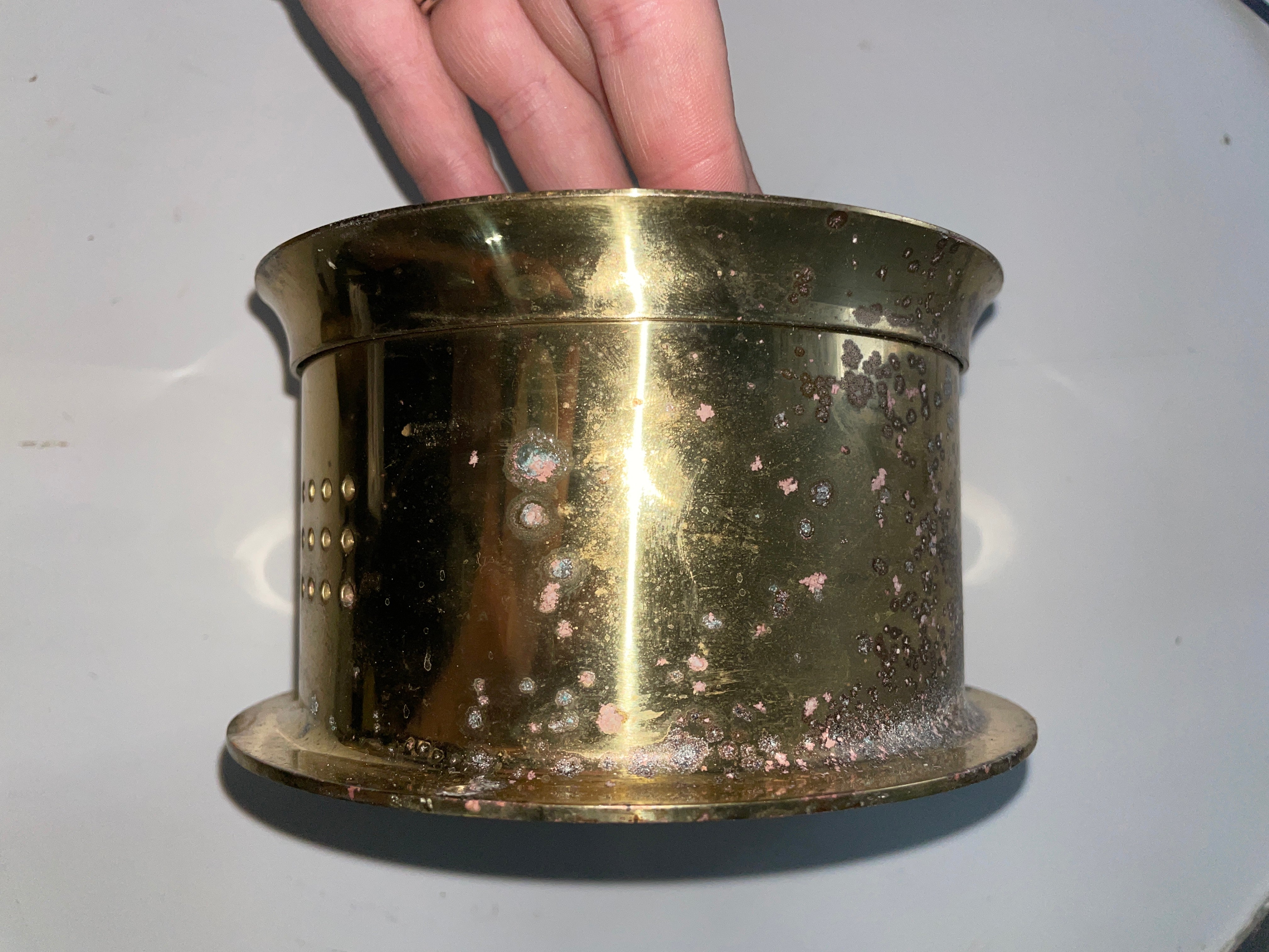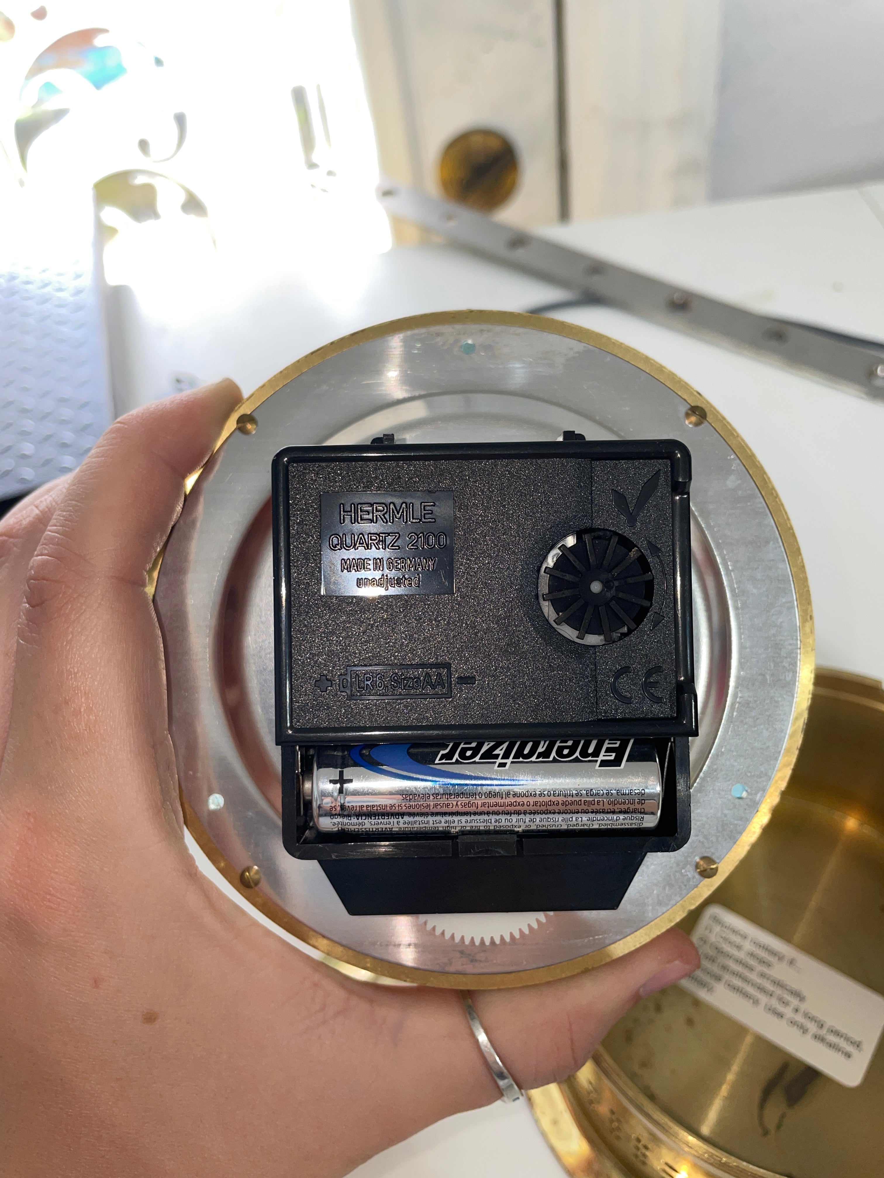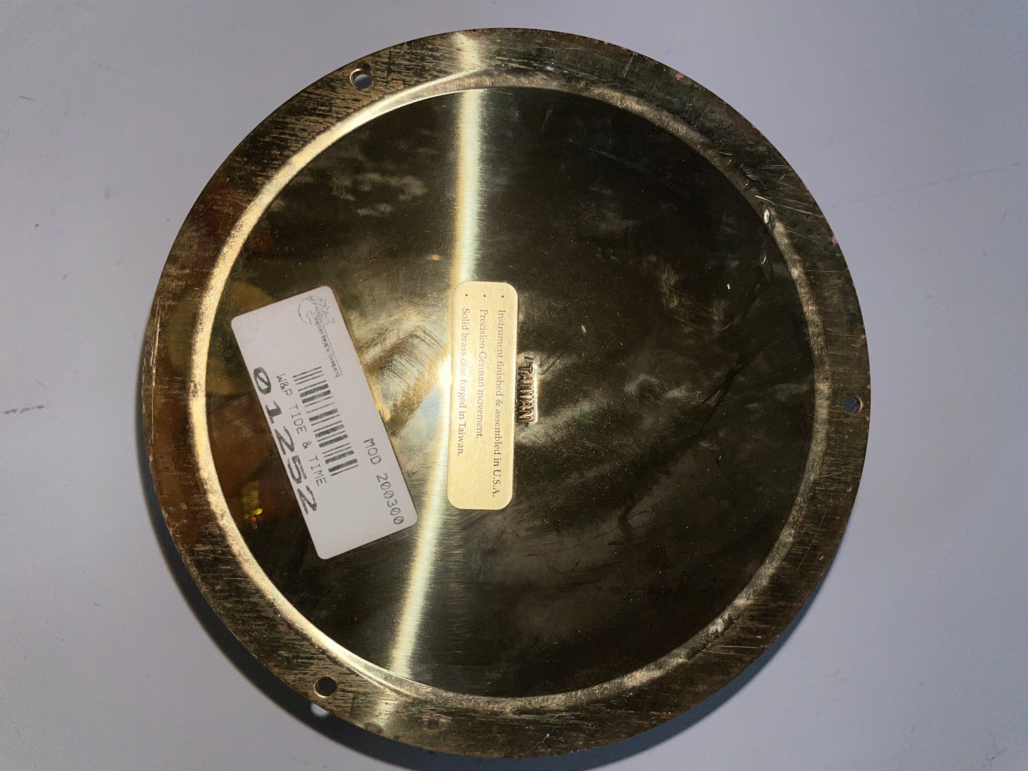 Working!!!! Weems and Plath clock with high / low tide clock. The brass exterior has lots of pitting. It may clean up some. It is 5 1/2" diameter x 3" tall.