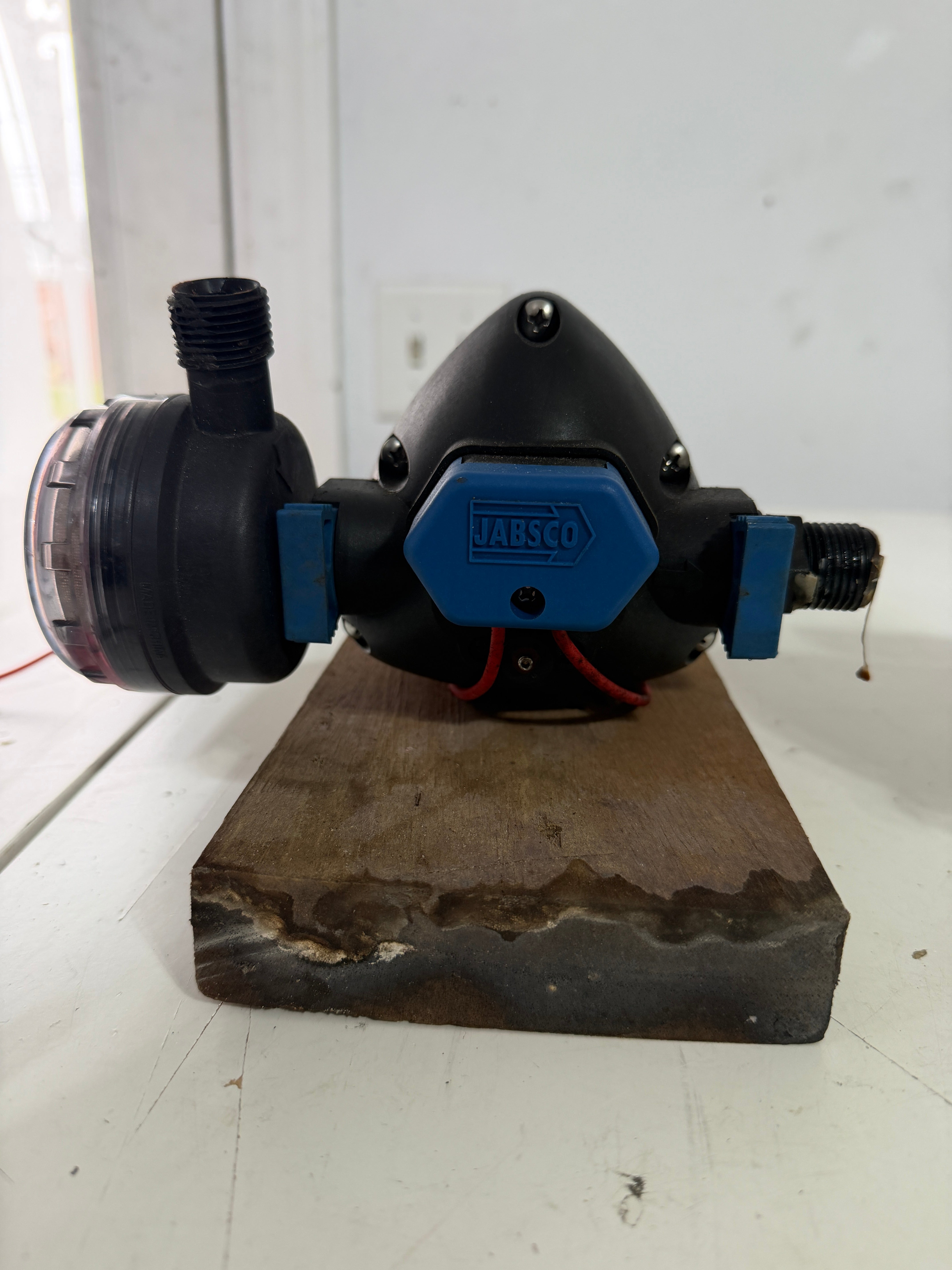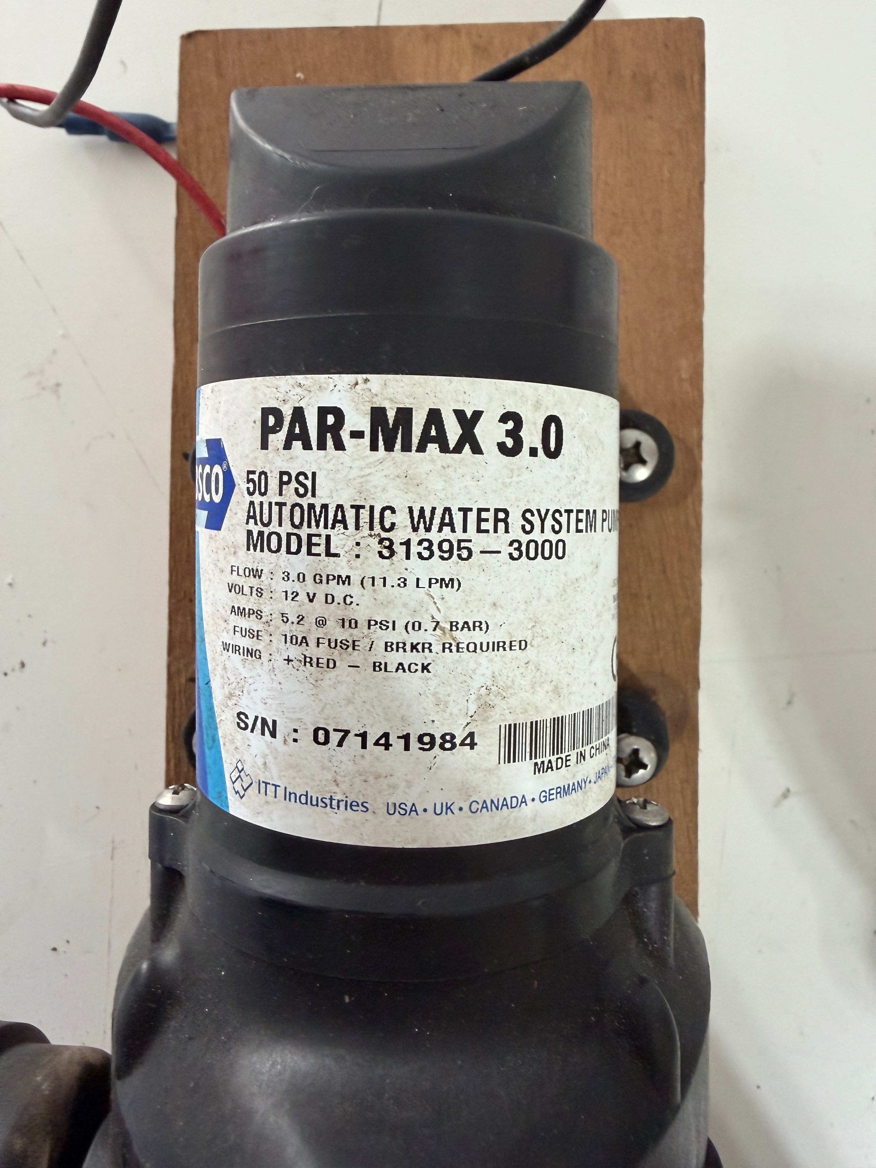 This west marine 50 PSI water system pump looks to be in good condition, although it is untested. 31395-3000 is the model. 12 volt DC. 5.2 amps @ 50PSI. Comes with the filter as well.