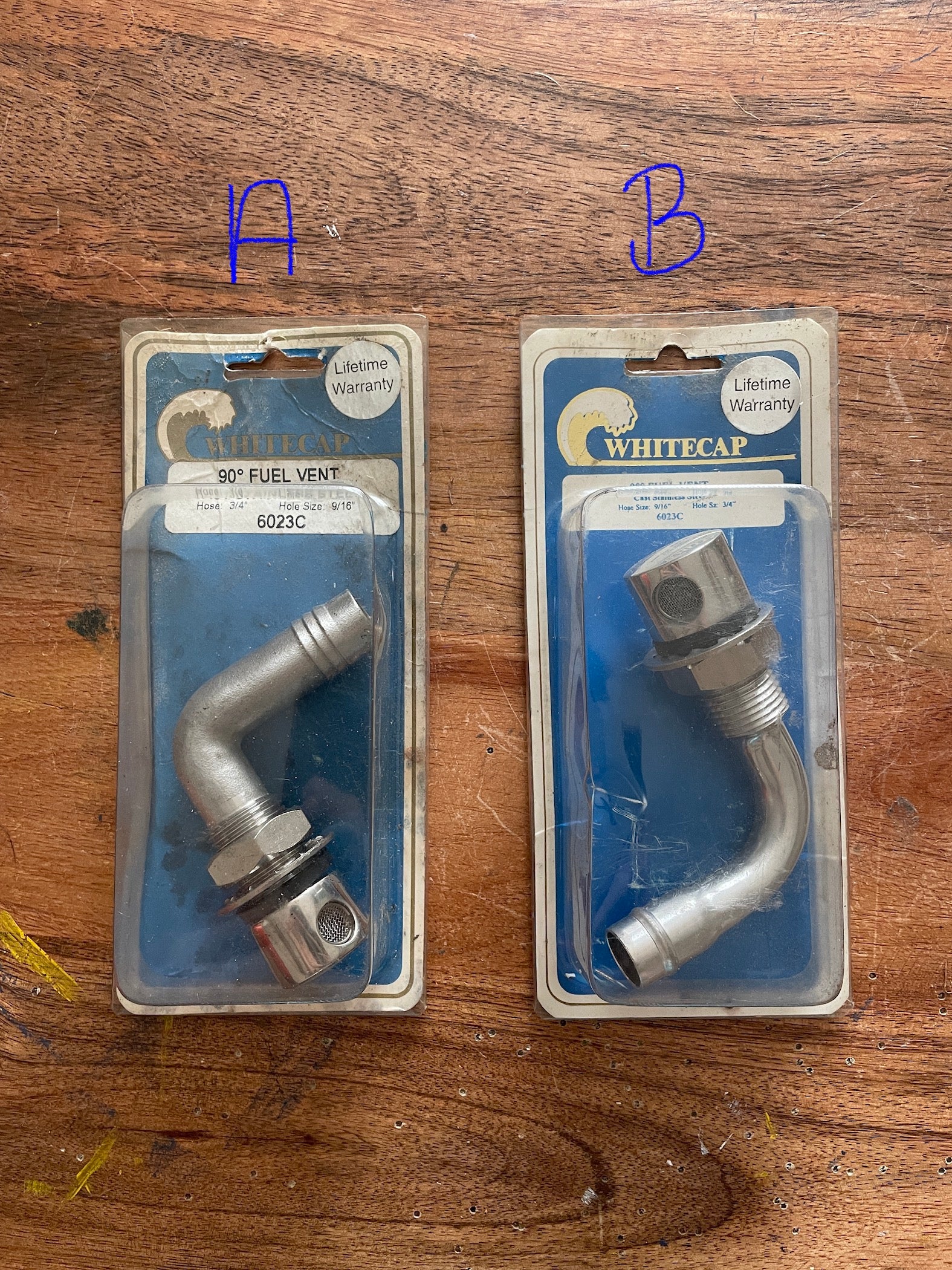 Brand new made by whitecap. 90 degree fuel vent stainless steel. These 2 options are slightly different. Both are the same model - 6023C